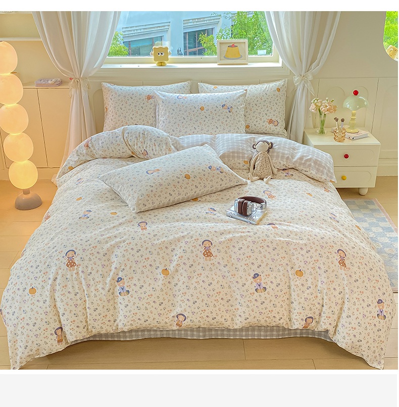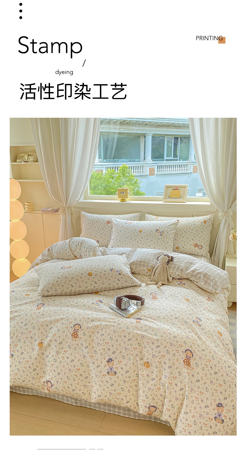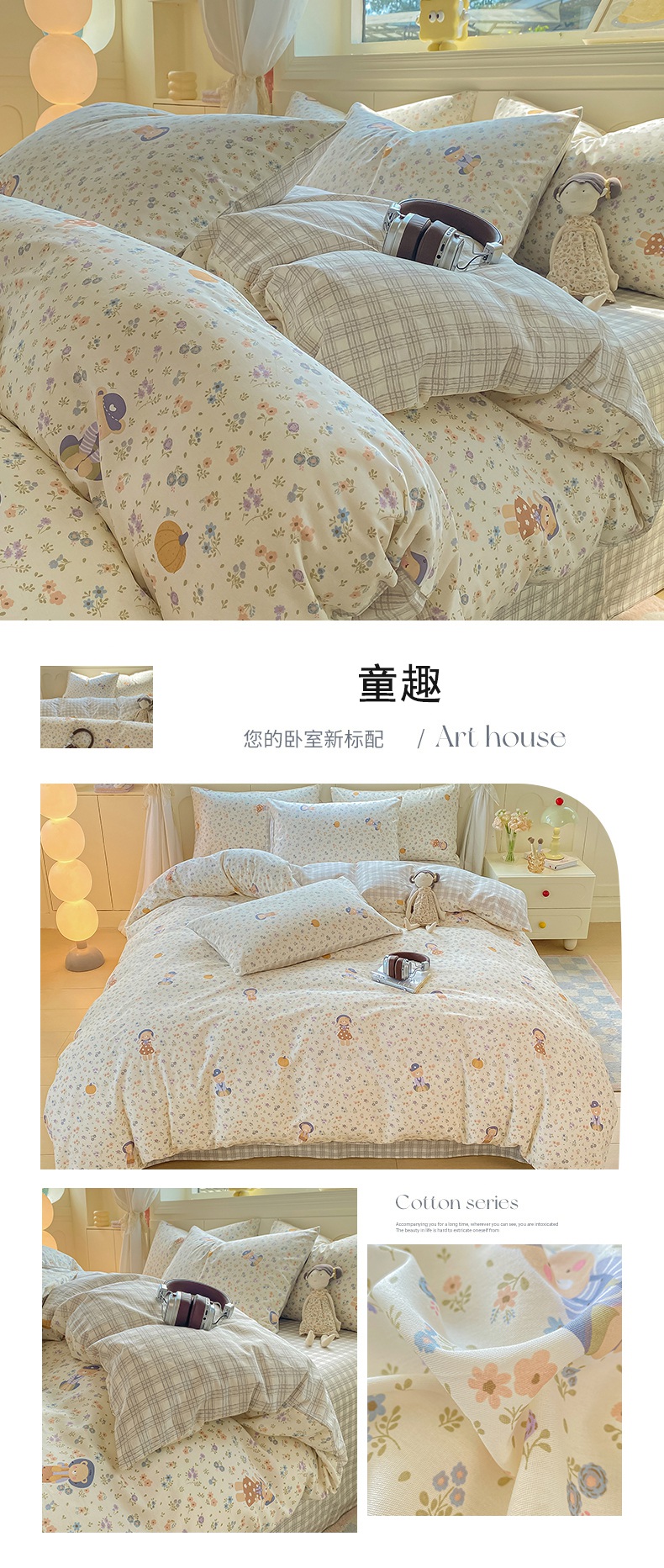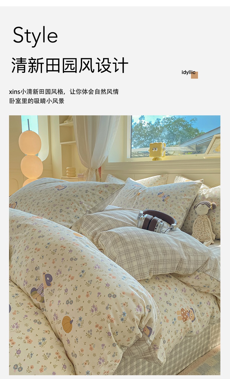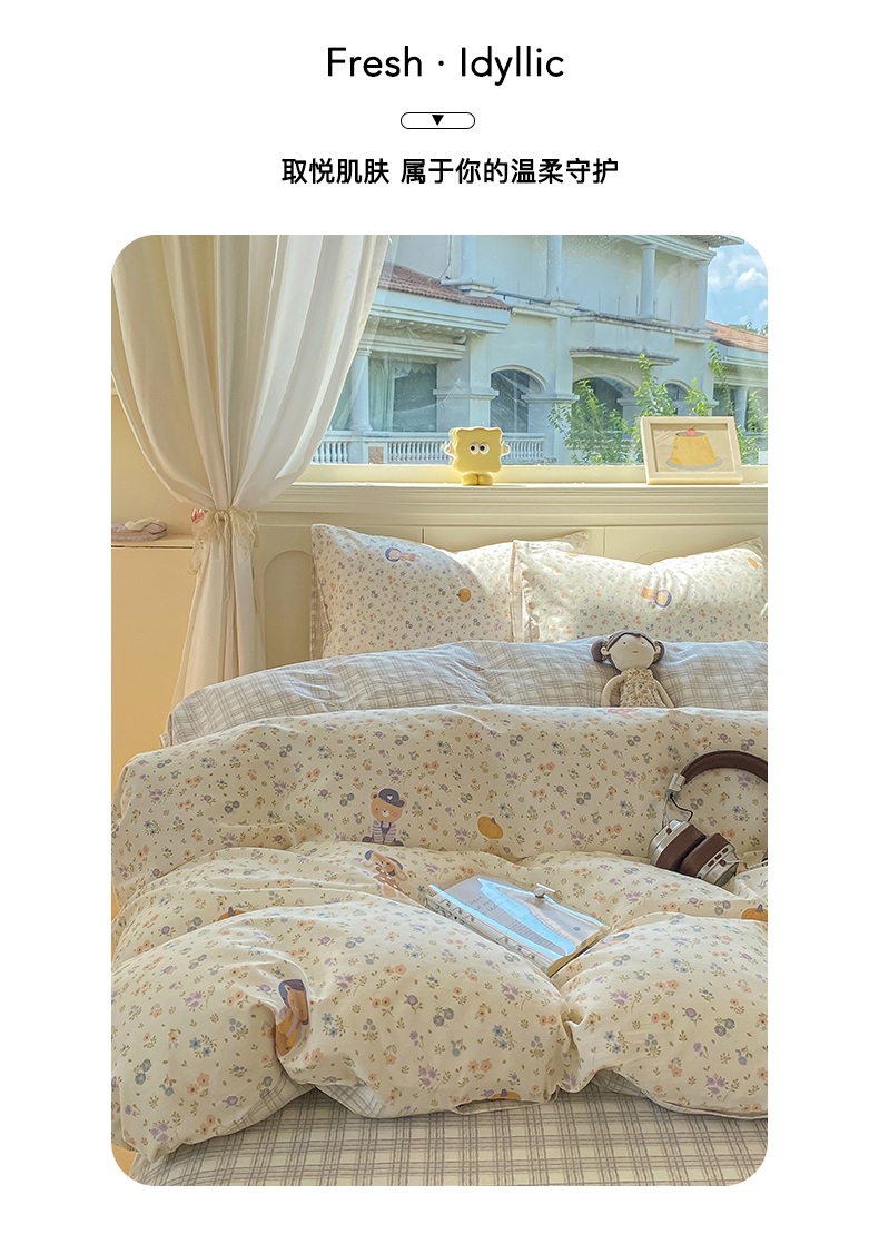 商品名称:黑马家居 2025新款13070全棉田园小清新四件套系列 晚安小熊