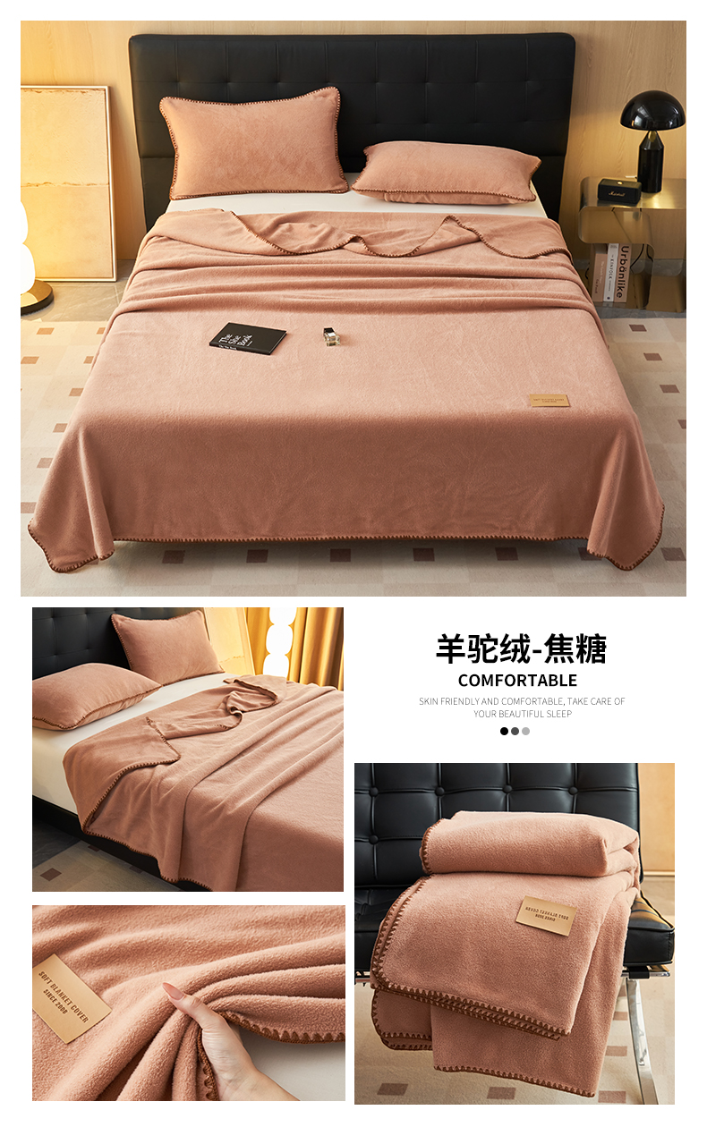 商品名称:莱家富 2026新款四季毯羊驼绒三角针边毛毯午睡沙发盖毯空调毯加厚500克双层毯 羊驼绒-卡其