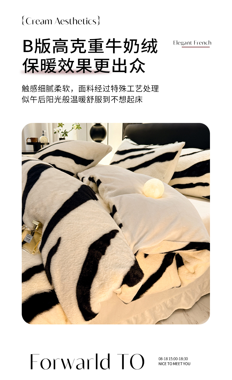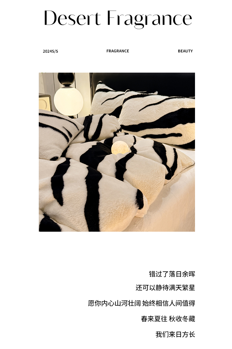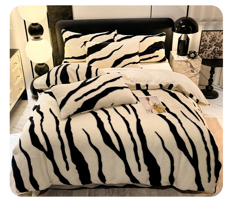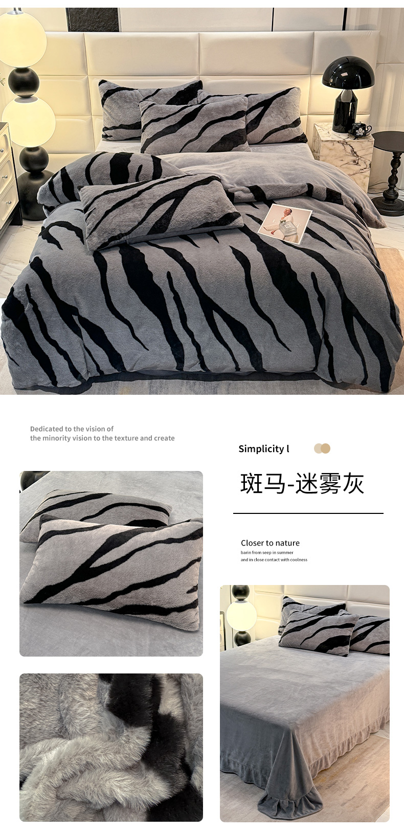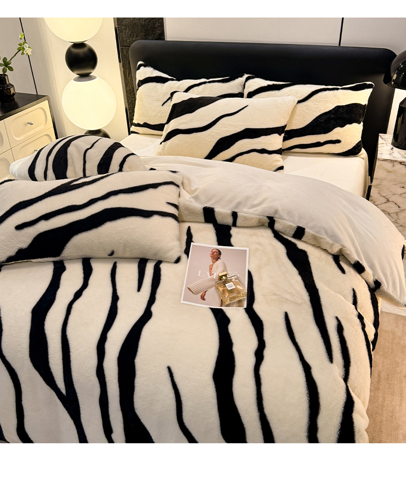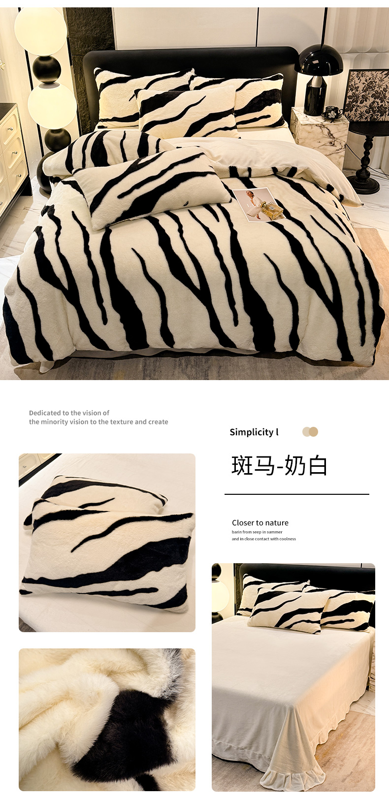 商品名称:唐人居 2025新款兔毛绒牛奶绒四件套--斑马 斑马-奶白