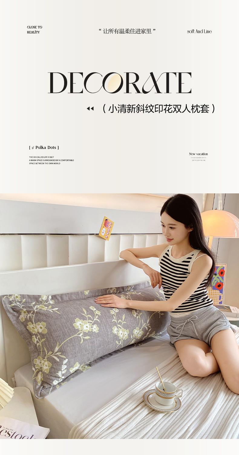 雨彤家纺 2025新款小清新斜纹印花双人枕套 浅忆时光