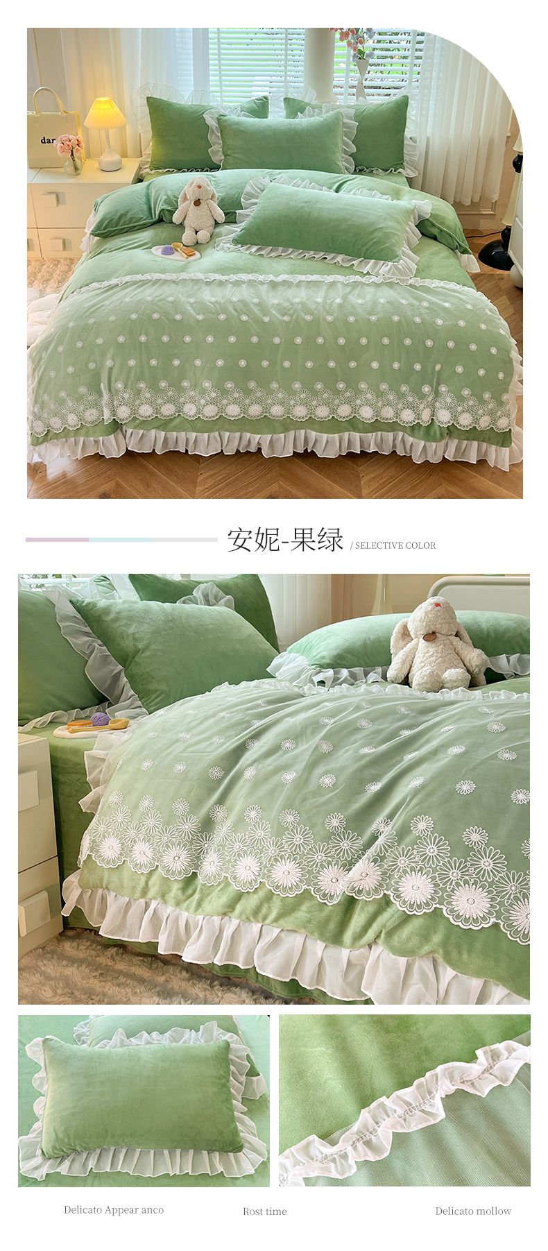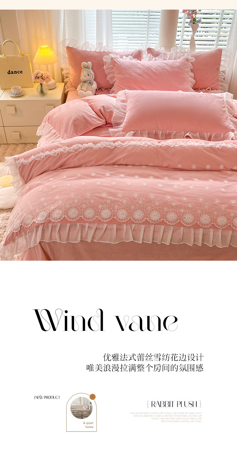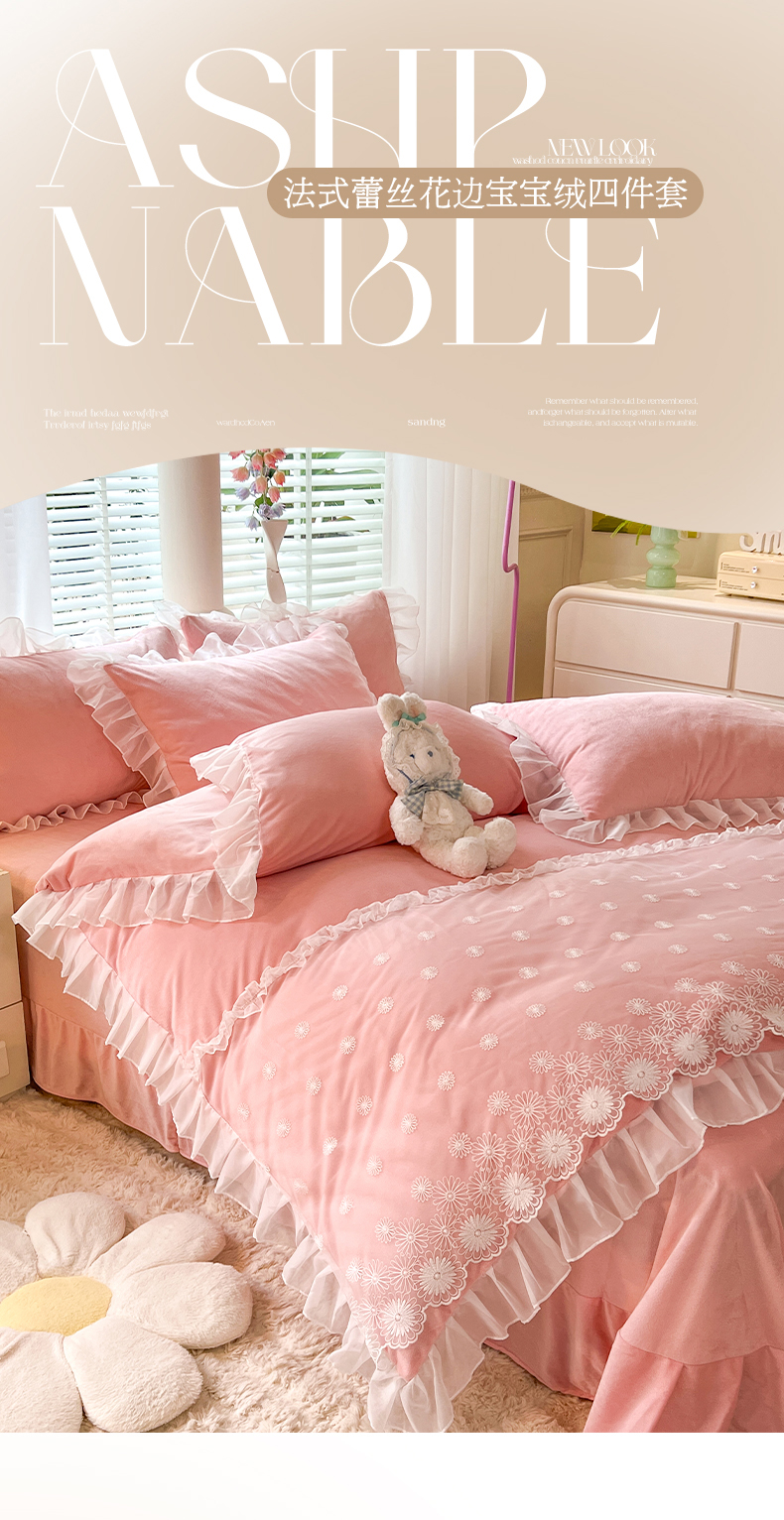 商品名称:唐人居 2025新款法式蕾丝花边宝宝绒四件套--安妮系列 安妮-橙