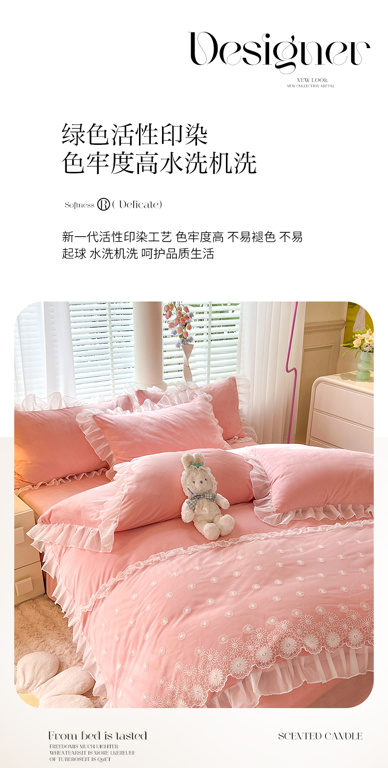 (总)唐人居 2026新款水洗棉花边床盖四件套-花影系列,花影-浅紫,花影-豆沙,花影-玫红,花影-暖橘,花影-苹果绿,花影-浅粉,花影-浅灰
