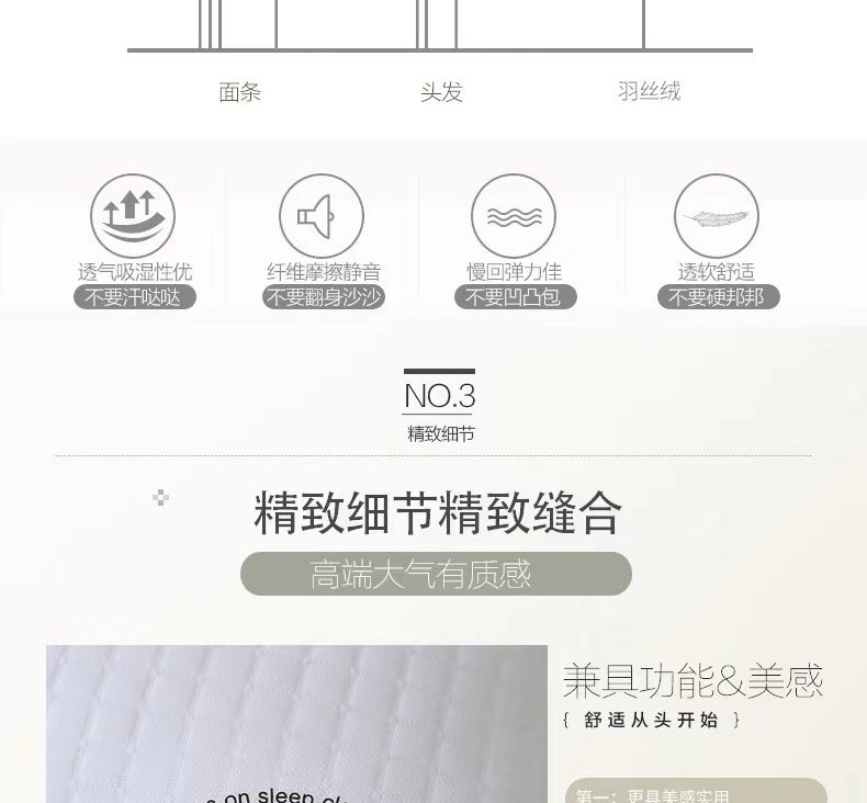 商品名称:永乐枕芯 2025新款透气洁净针织棉羽丝枕头枕芯 白色低枕