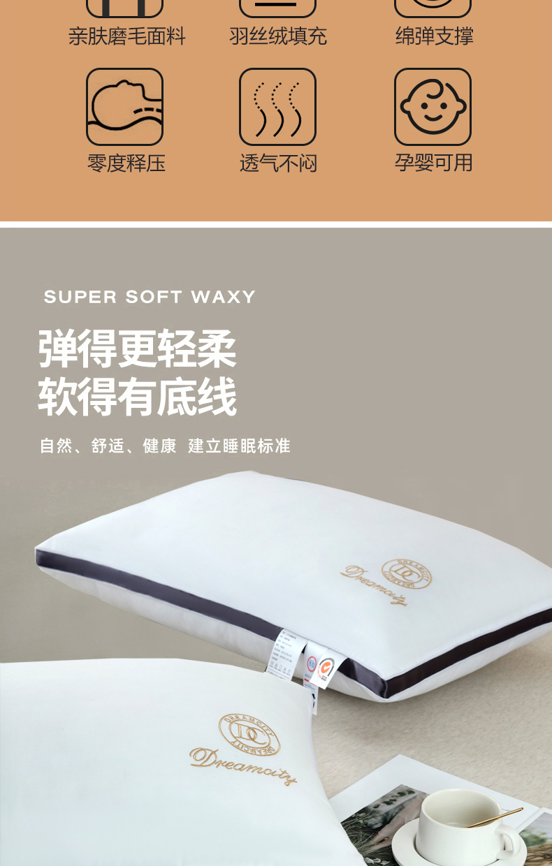 商品名称:永乐枕芯 2025新款DC磨毛羽丝绒枕枕头枕芯 咖啡金0.7kg