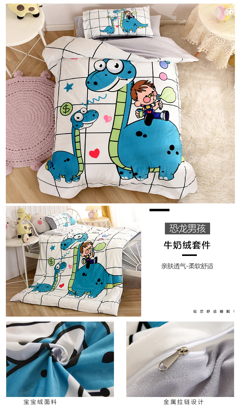当前位置: 91家纺网 > 商品网购 > 床品套件 > 六件套 > 萌宝家纺 2025秋冬幼儿园宝宝绒婴儿绒三件套被子六件套 恐龙男孩