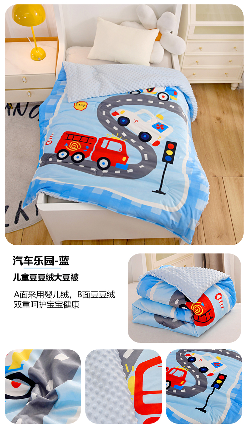 • 91家纺网 家纺一手货源 找家纺 萌宝家纺 2025新款可拆洗A类儿童豆豆绒大豆冬被儿童婴儿绒春秋被安抚被被子被芯 太空恐龙