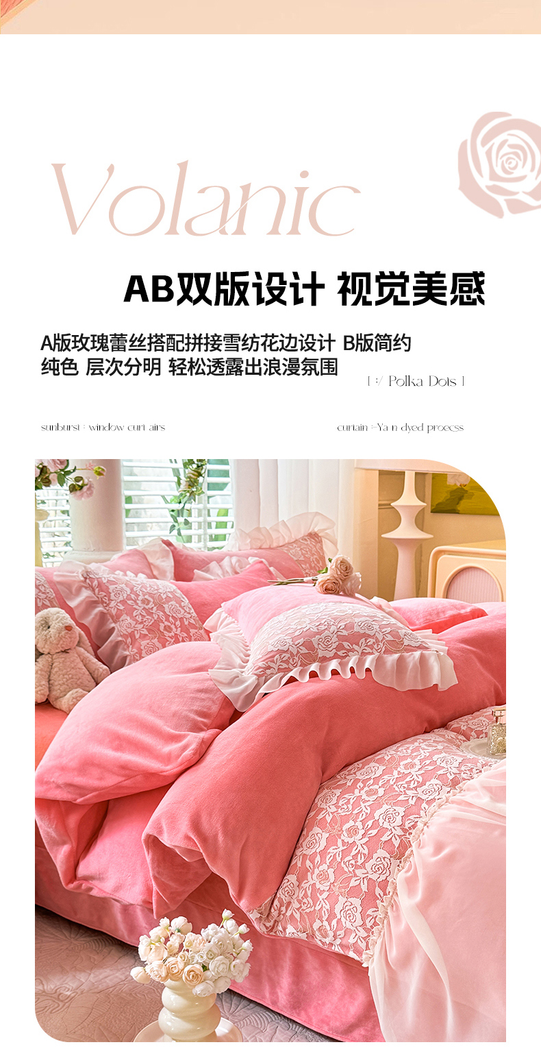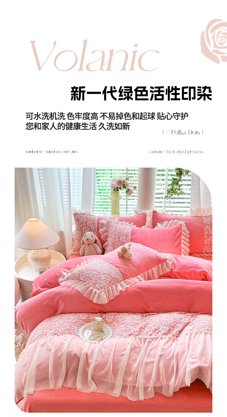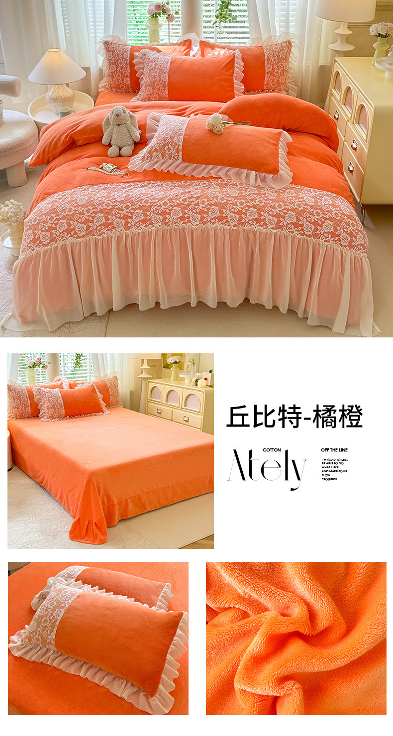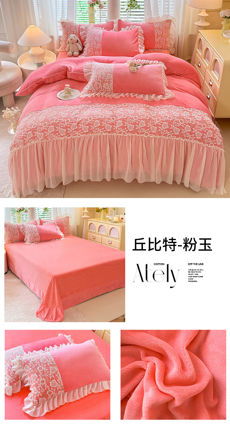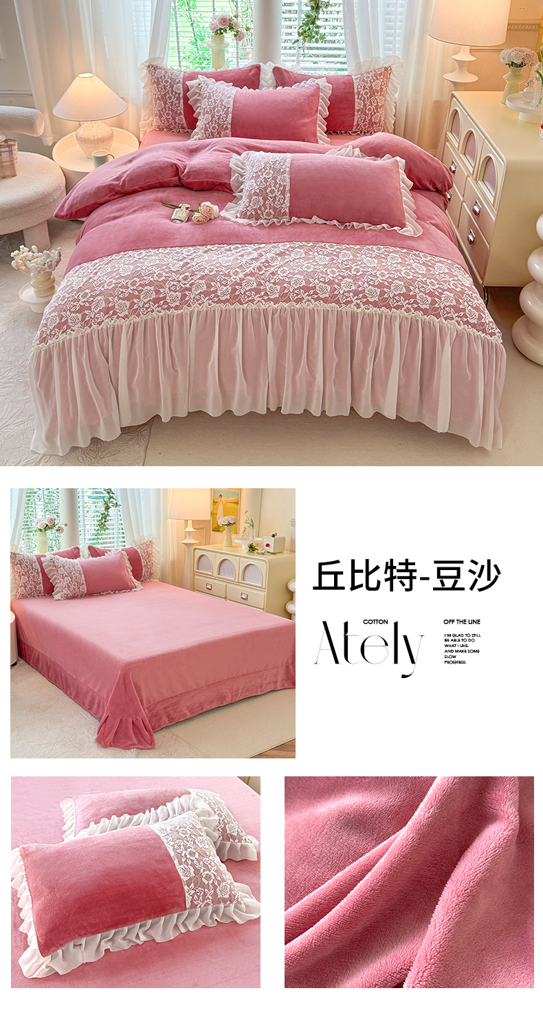 商品名称:唐人居 2025新款高克重牛奶绒蕾丝雪纺花边四件套-丘比特 丘比特-豆沙