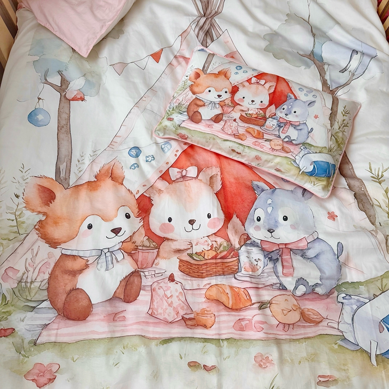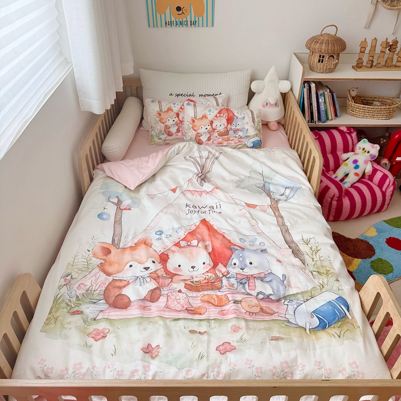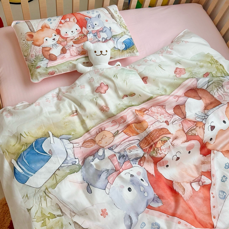 当前位置: 91家纺网 > 商品网购 > 床品套件 > 三件套 > 萌宝家纺 2025新款A类60S数码大版印花长绒棉幼儿园三件套儿童多件套 丛林聚餐