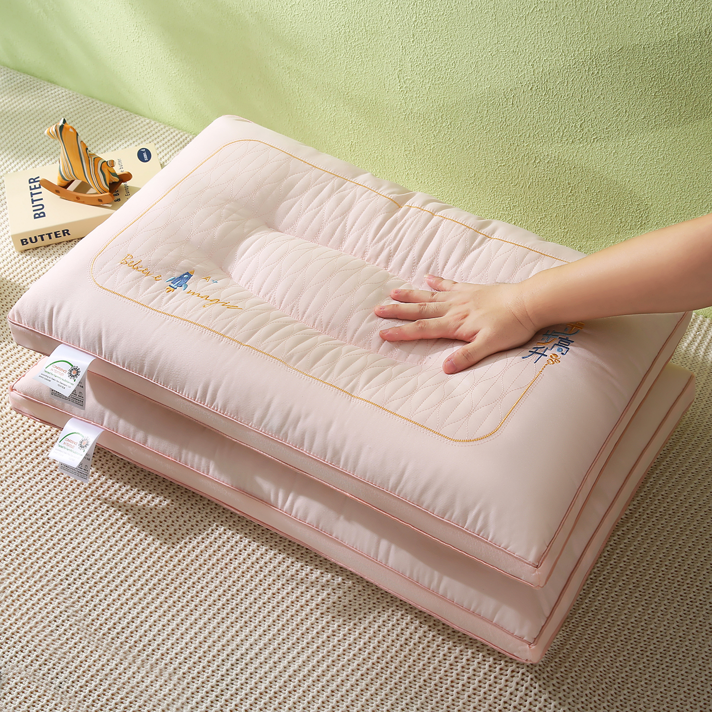 (总)橘夏家纺 2025新款驼绒蛋白枕枕头枕芯,粉色,绿色