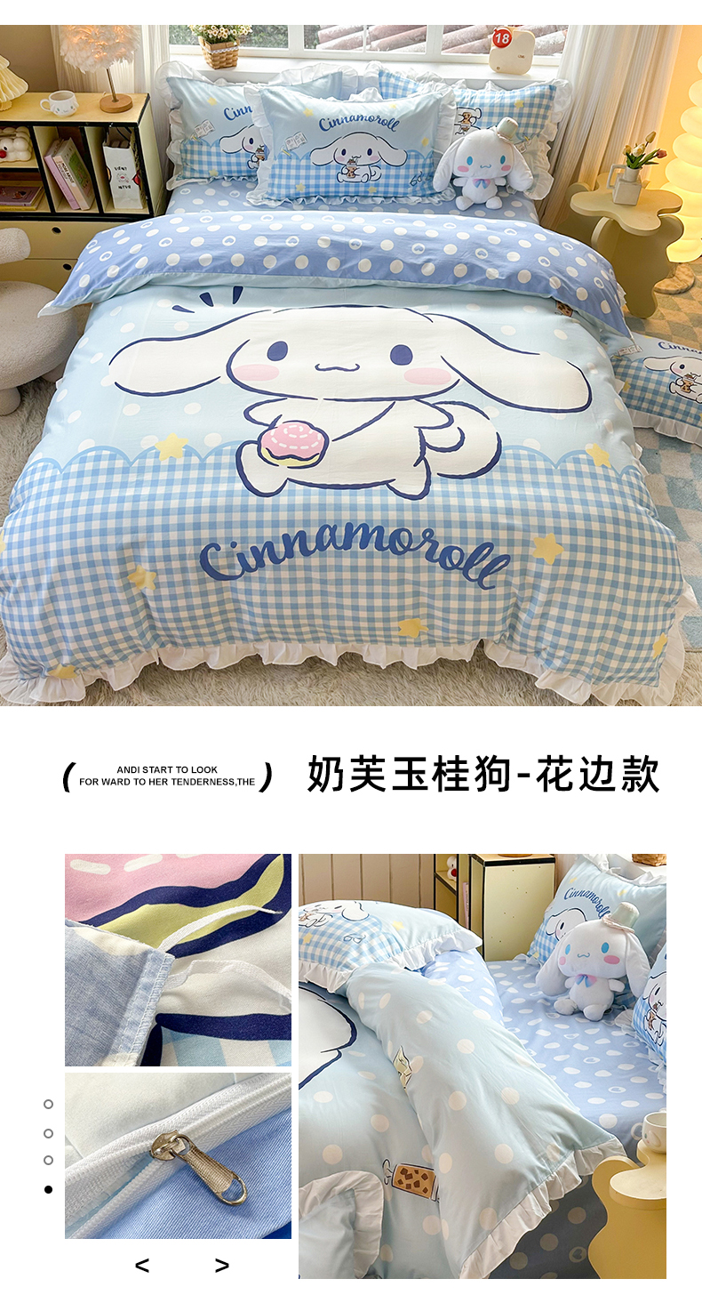 当前位置: 91家纺网 > 商品网购 > 床品套件 > 四件套 > 全棉普通四件套 > 2025新款大版三丽鸥系列 纯棉床单全棉床裙学生三四件套 花边款 花边款-草莓库洛米