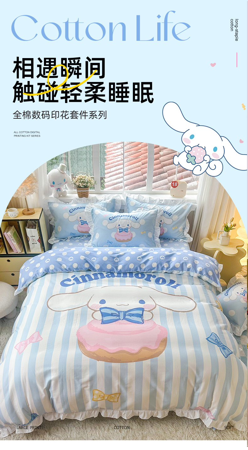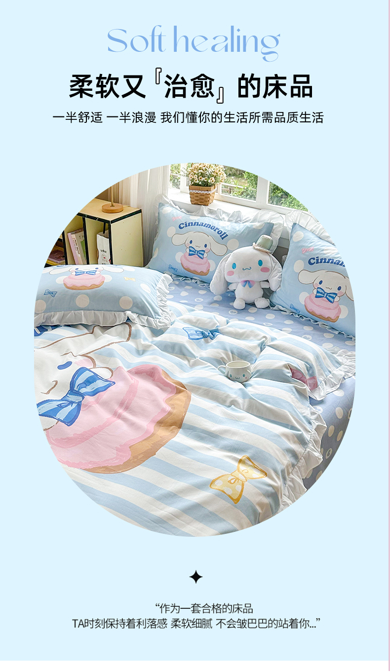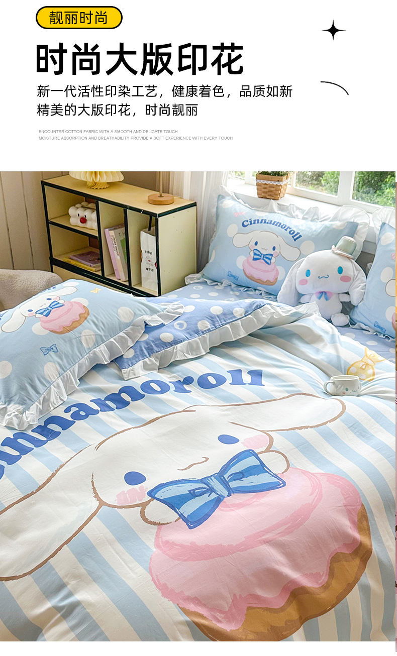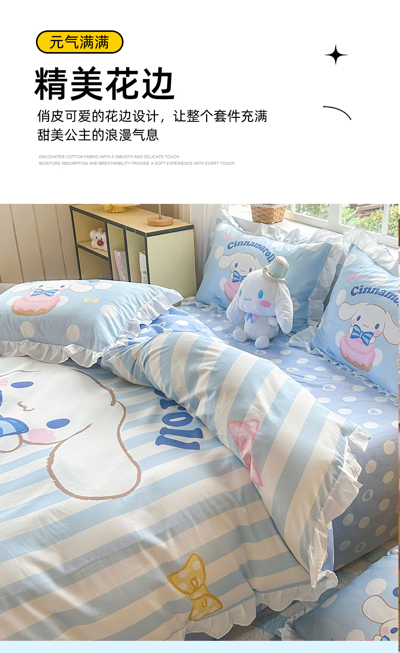当前位置: 91家纺网 > 商品网购 > 床品套件 > 四件套 > 全棉普通四件套 > 2025新款大版三丽鸥系列 纯棉床单全棉床裙学生三四件套 花边款 领带玉桂狗-白花边
