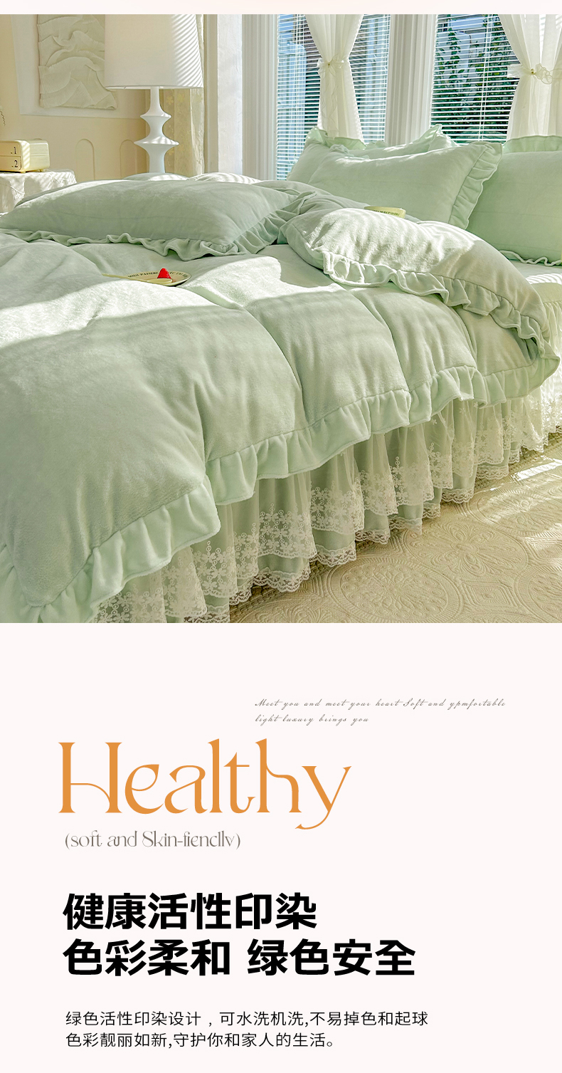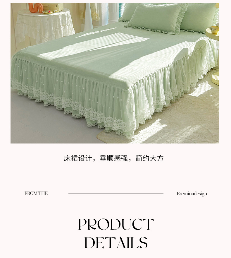 商品名称:唐人居 2025新款加厚牛奶绒蕾丝花边床裙款四件套--爱丽丝系列 爱丽丝-粉玉
