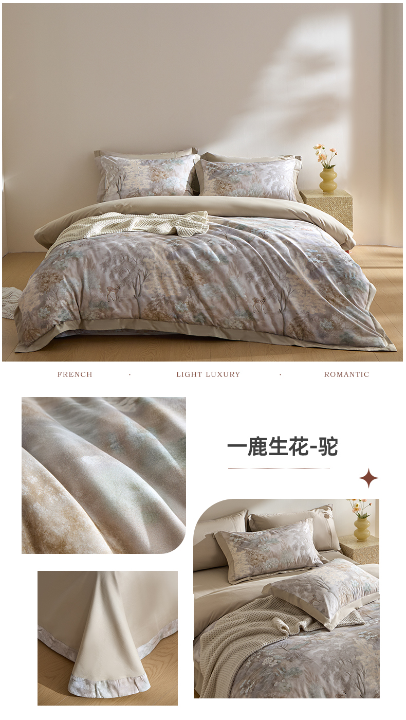 商品名称:禾时 2025新款全棉纯棉贡缎数码50双股长绒棉磨毛四件套(带高档礼盒) 千寻