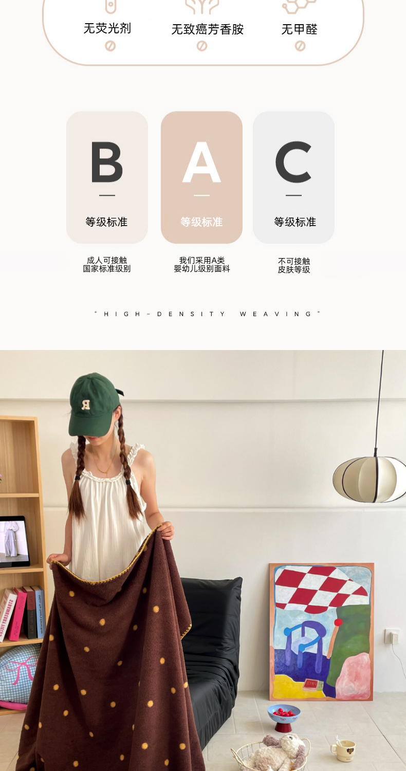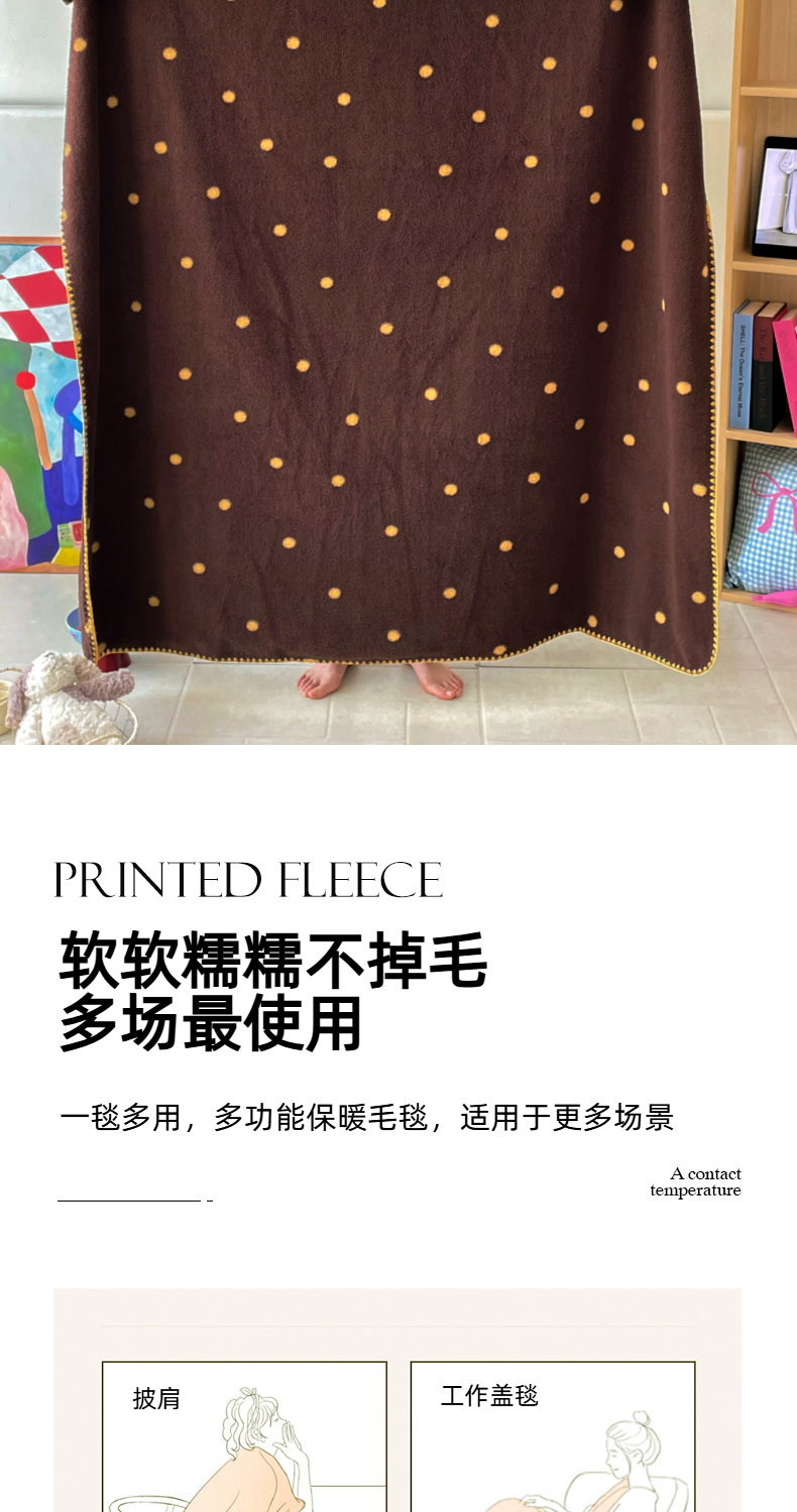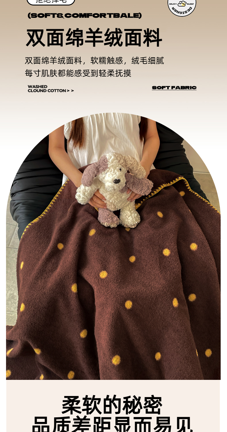 商品名称:晚爱家纺(原晚安家居) 2025新款跨境暖羊绒双面绵羊绒沙发毯多功能盖毯 咖波点