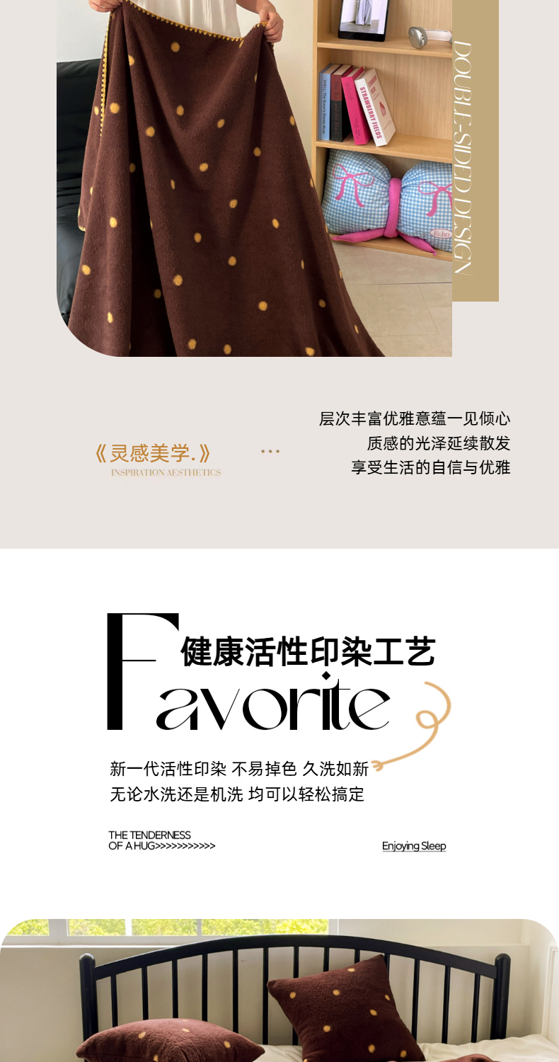 晚爱家纺(原晚安家居) 2025新款跨境暖羊绒双面绵羊绒沙发毯多功能盖毯 咖波点