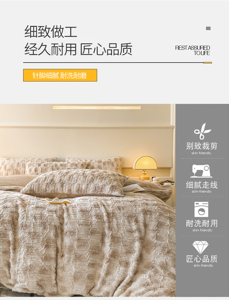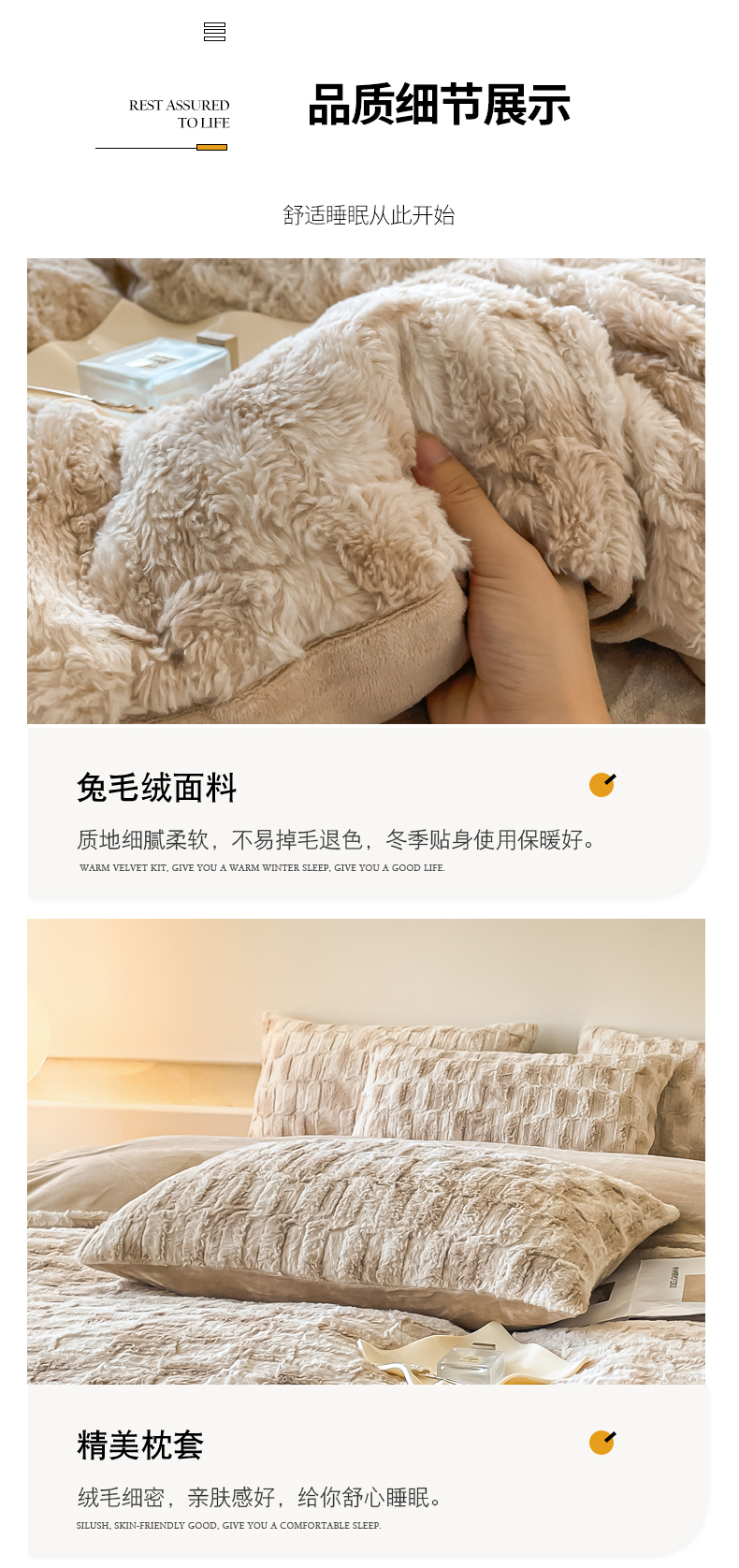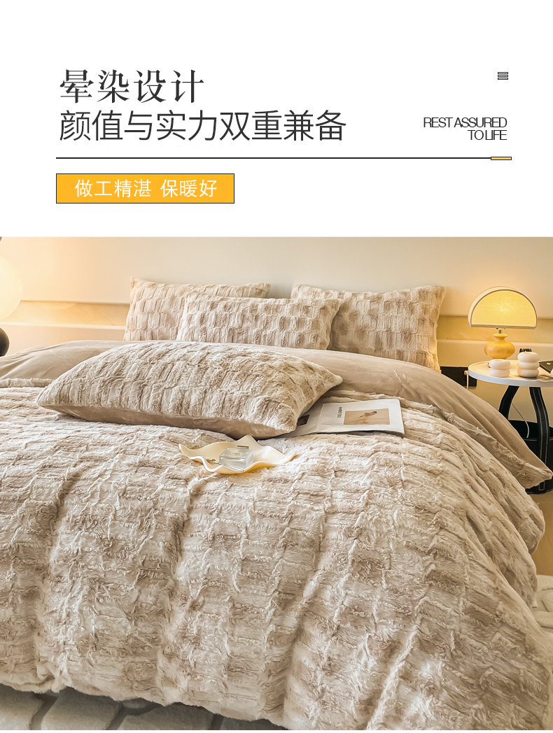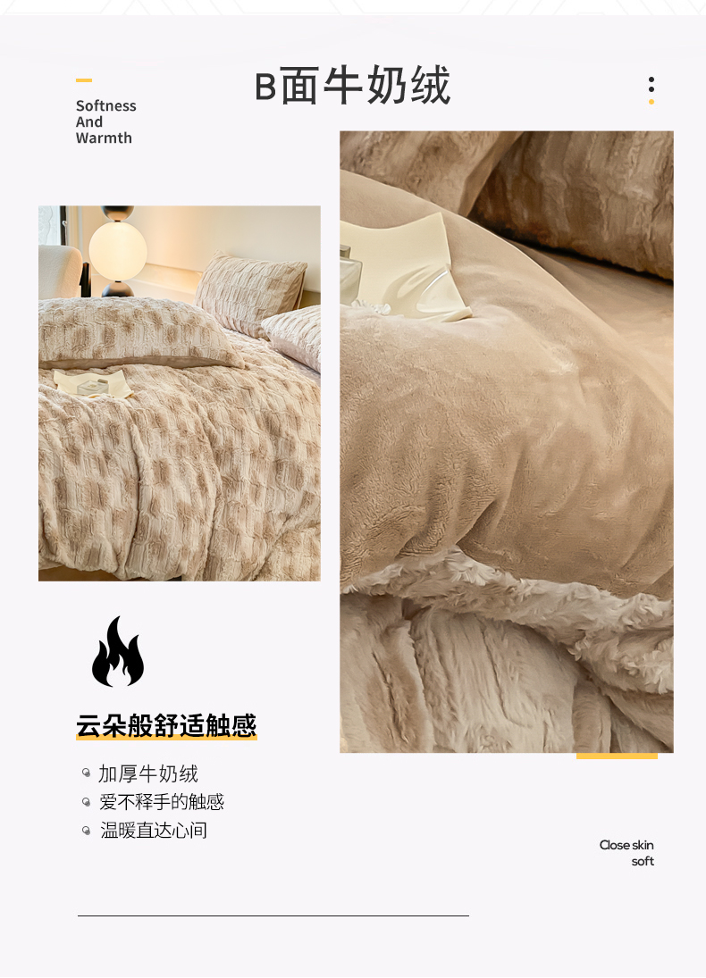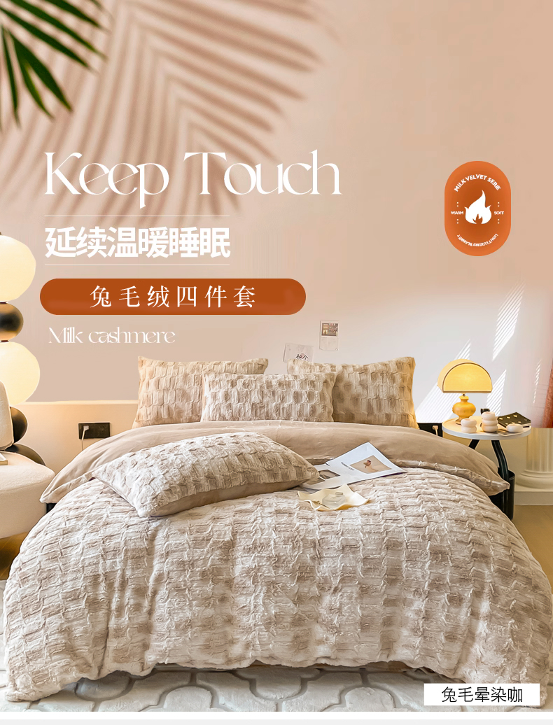 当前位置: 91家纺网 > 商品网购 > 床品套件 > 四件套 > 牛奶绒四件套 > 金爱家 2025新款全消光牛奶绒A类纯色獭兔毛绒立体牛奶绒四件套 晕染咖