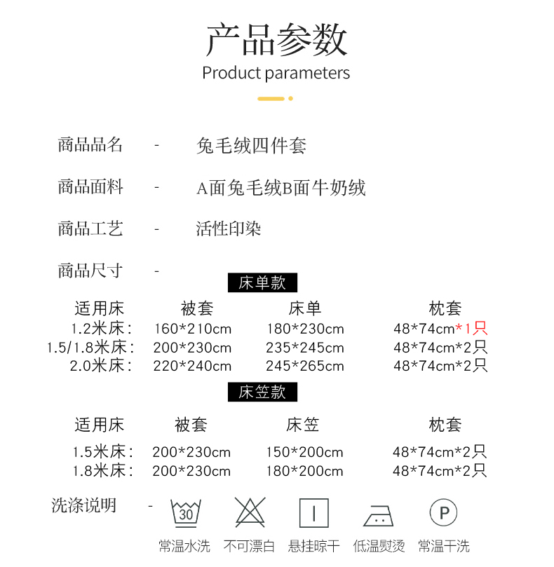 【床笠款】1.5四件套-被套200x230 | ¥125.00 |