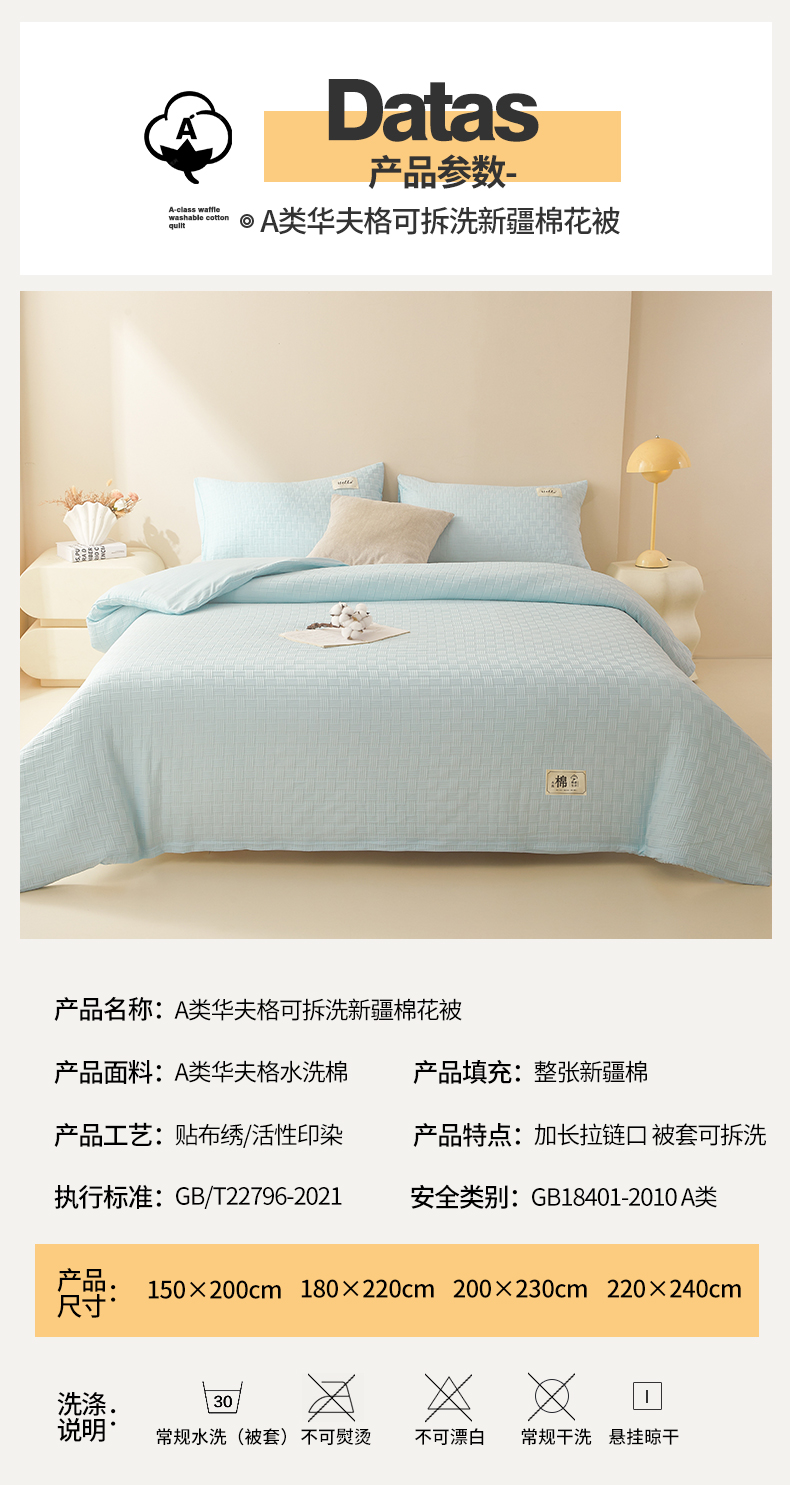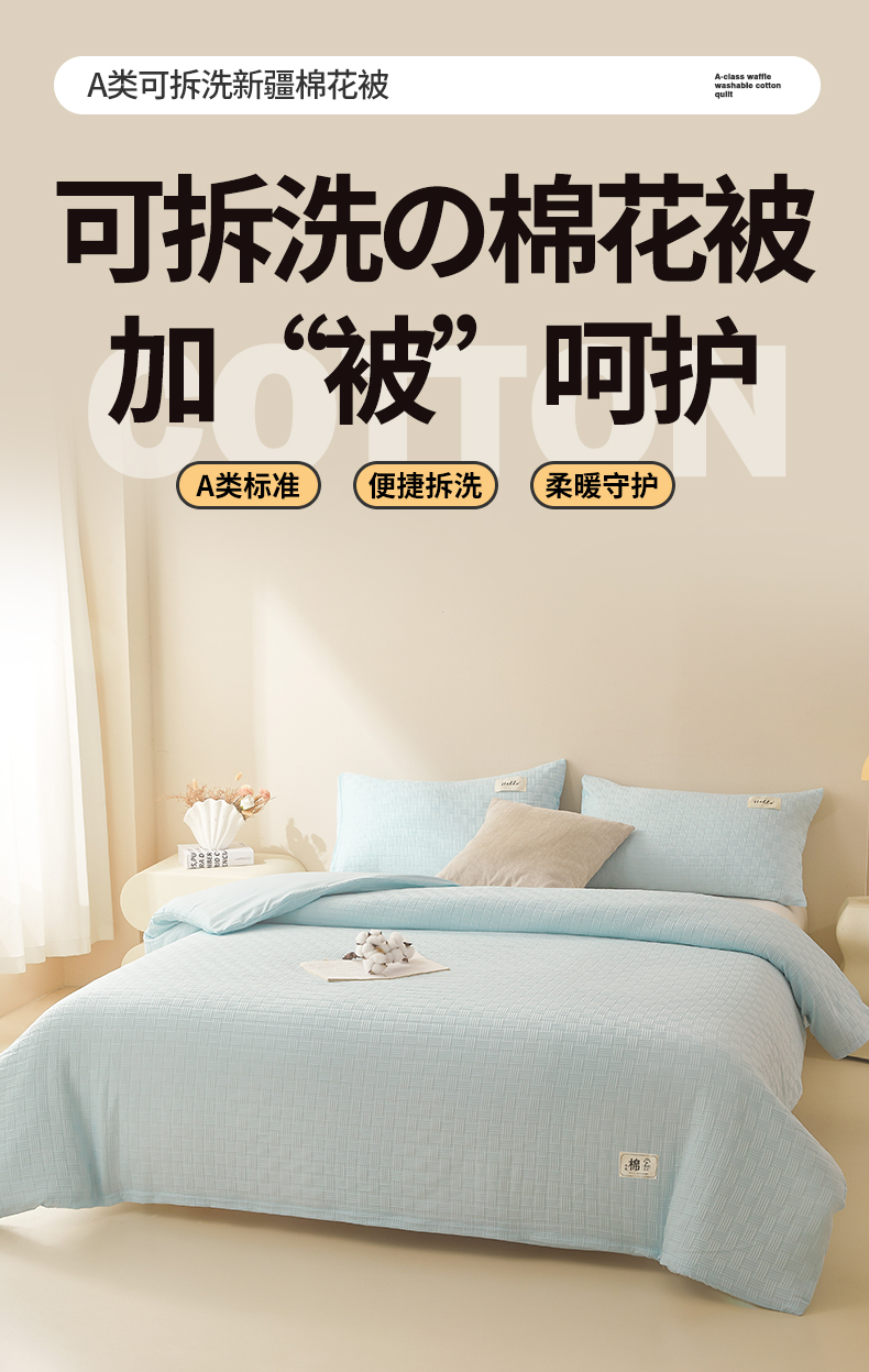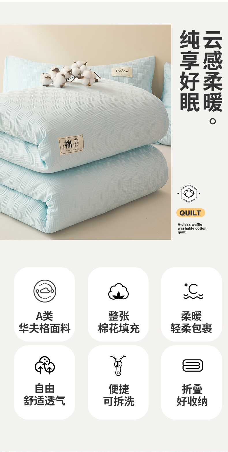 (总)好睡棉 2025新款华夫格可拆洗新疆棉花被冬被春秋被夏被四季被子被芯,麦田绿,玫瑰粉,梦幻蓝,迷雾灰,奶白玉,香芋紫
