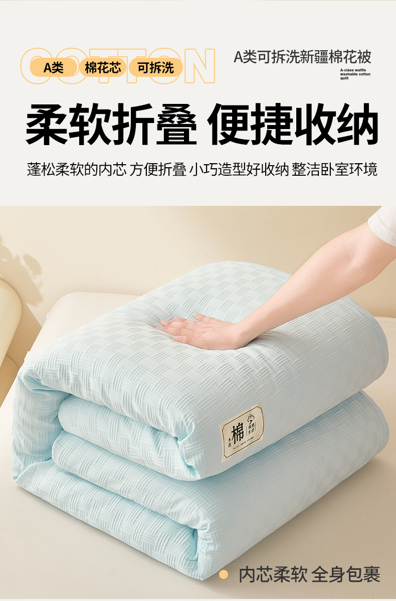 • 91家纺网 家纺一手货源 找家纺 好睡棉 2025新款华夫格可拆洗新疆棉花被冬被春秋被夏被四季被子被芯 梦幻蓝