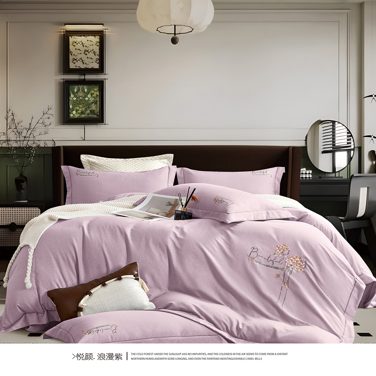(总)U品汇 2025新款60S双股120支贡缎长绒棉提花纯棉全棉刺绣花四件套高端礼盒工艺款-夕颜,夕颜-豆沙,夕颜-高级灰,夕颜-浪漫紫,夕颜-浅石兰,夕颜-松树绿,夕颜-糖粉