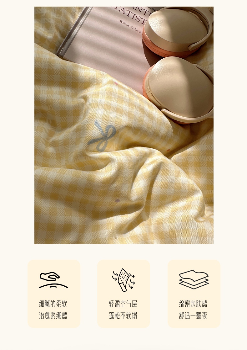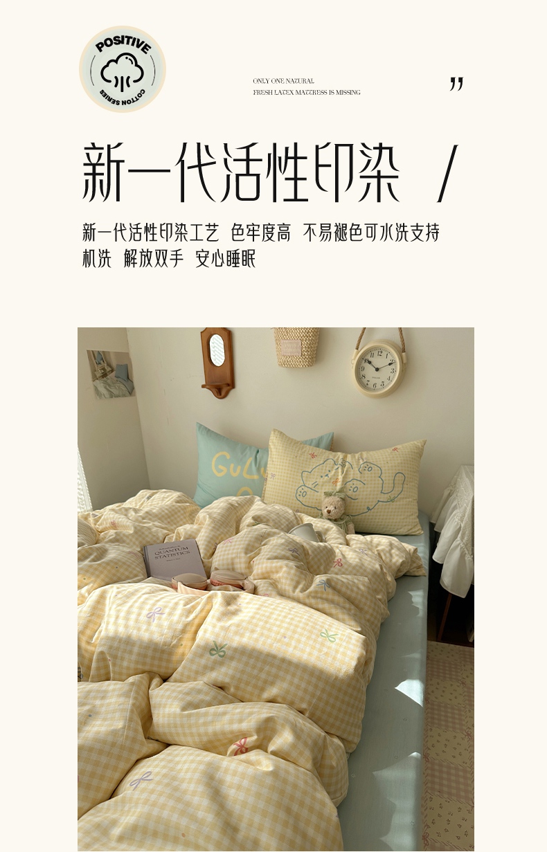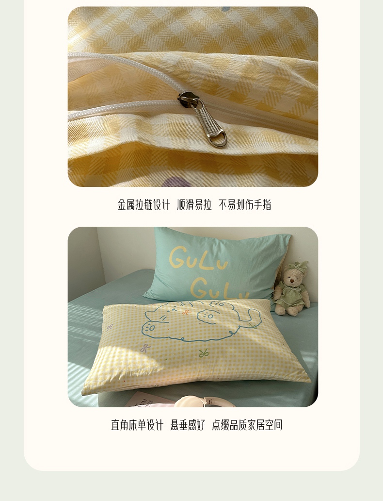瑞莱 2026春季13372印花大版枕套甜酷风四件套 夏日恋格(黄)