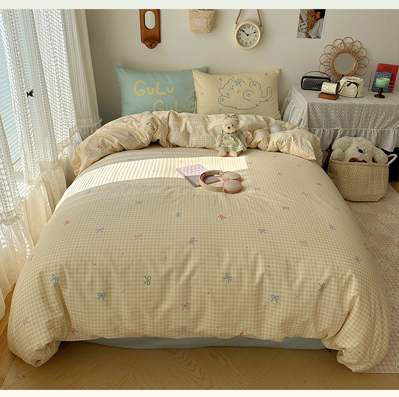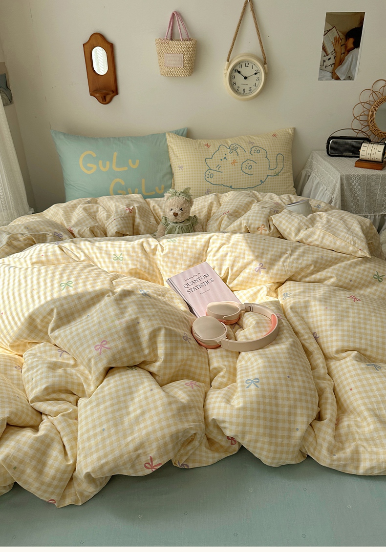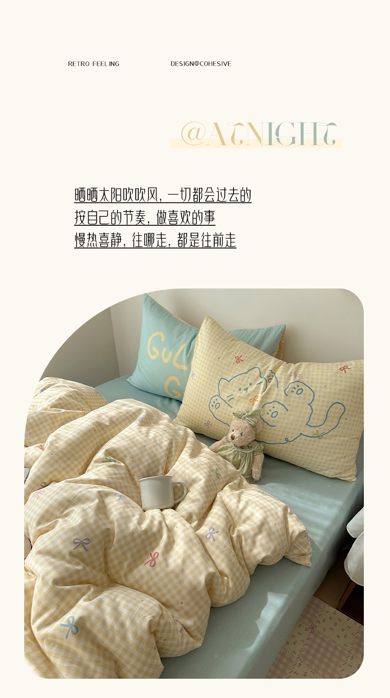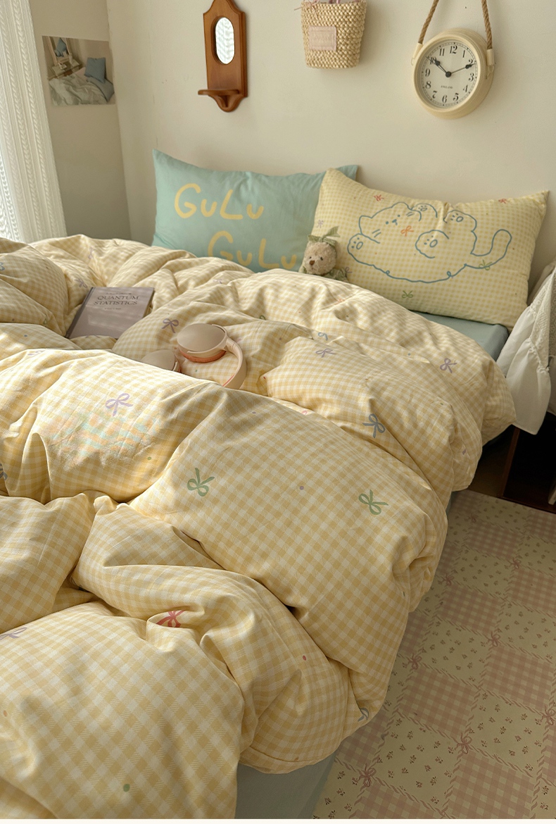 瑞莱 2026春季13372印花大版枕套甜酷风四件套 夏日恋格(黄)