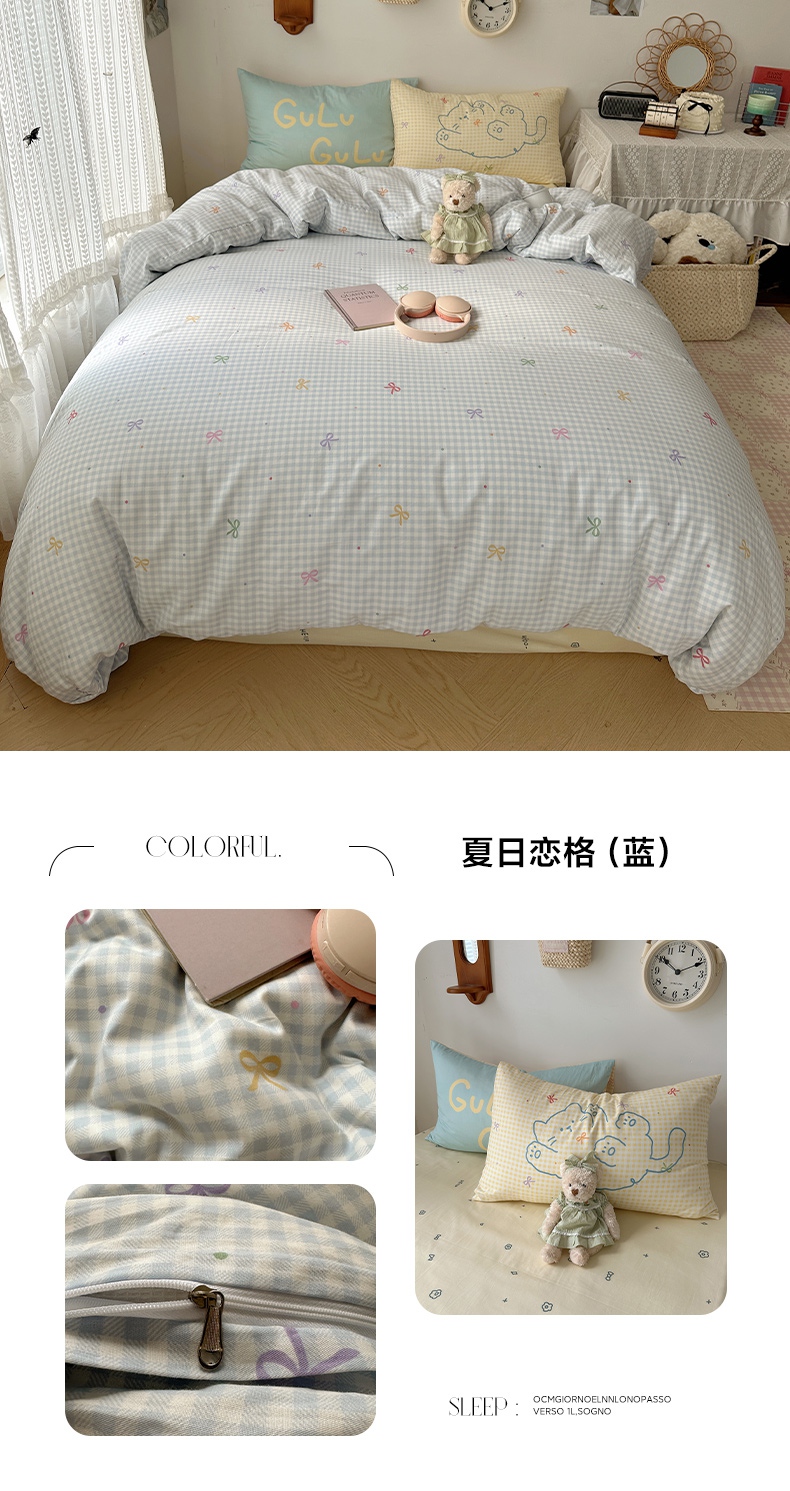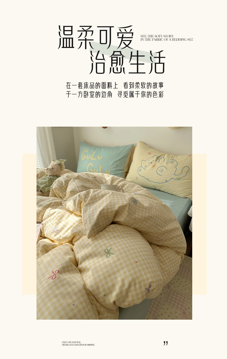 商品名称:瑞莱 2026春季13372印花大版枕套甜酷风四件套 夏日恋格(黄)