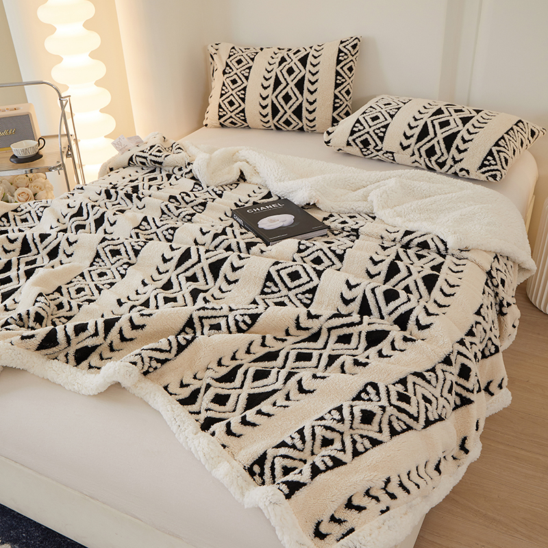 商品名称:(总)楼兰公主 2025新款阳离子羊羔绒菱格毯毛毯毯子-麦格系列