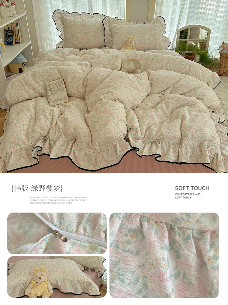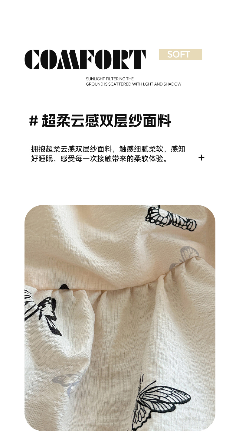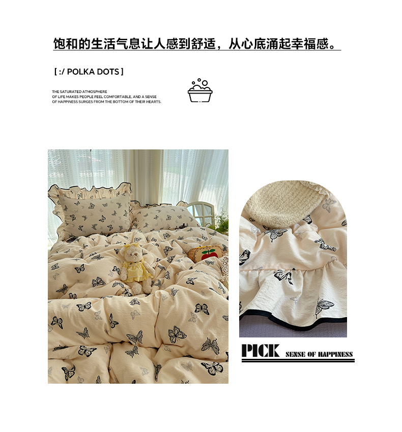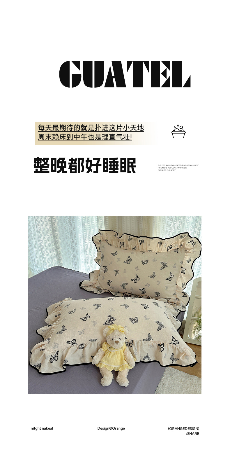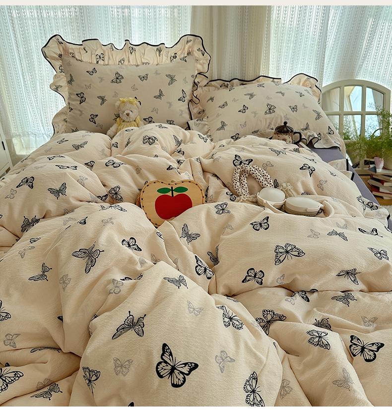 商品名称:红嘴企鹅 2025新款韩版双拼花边四件套 韩版-蝴蝶柔纱