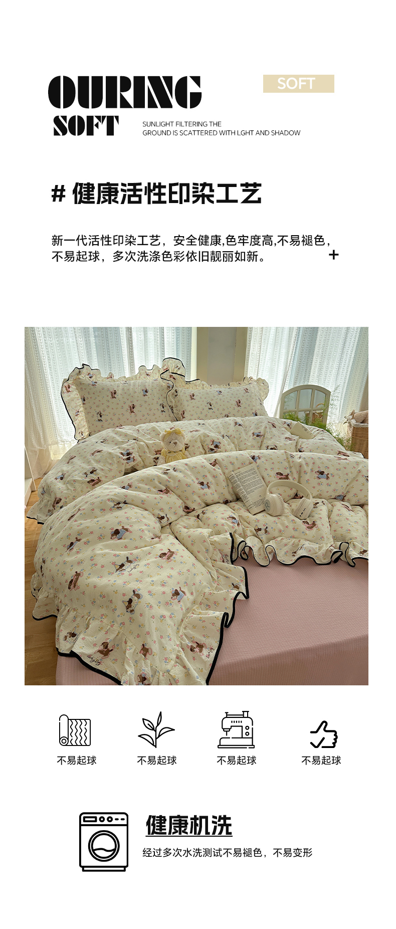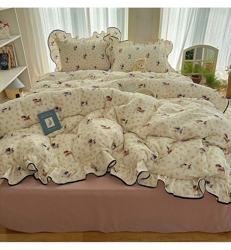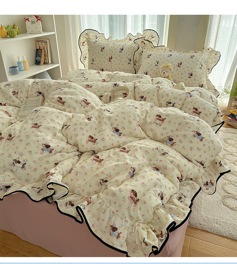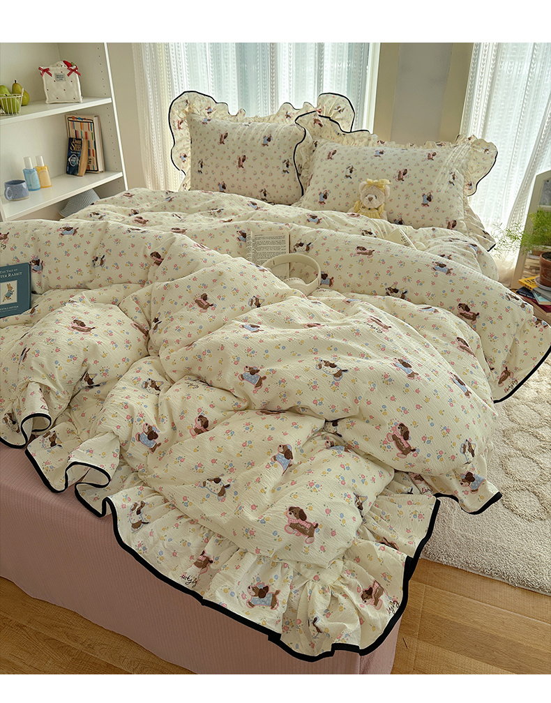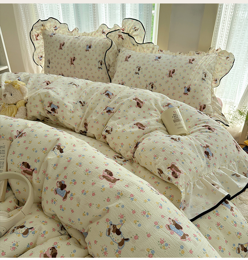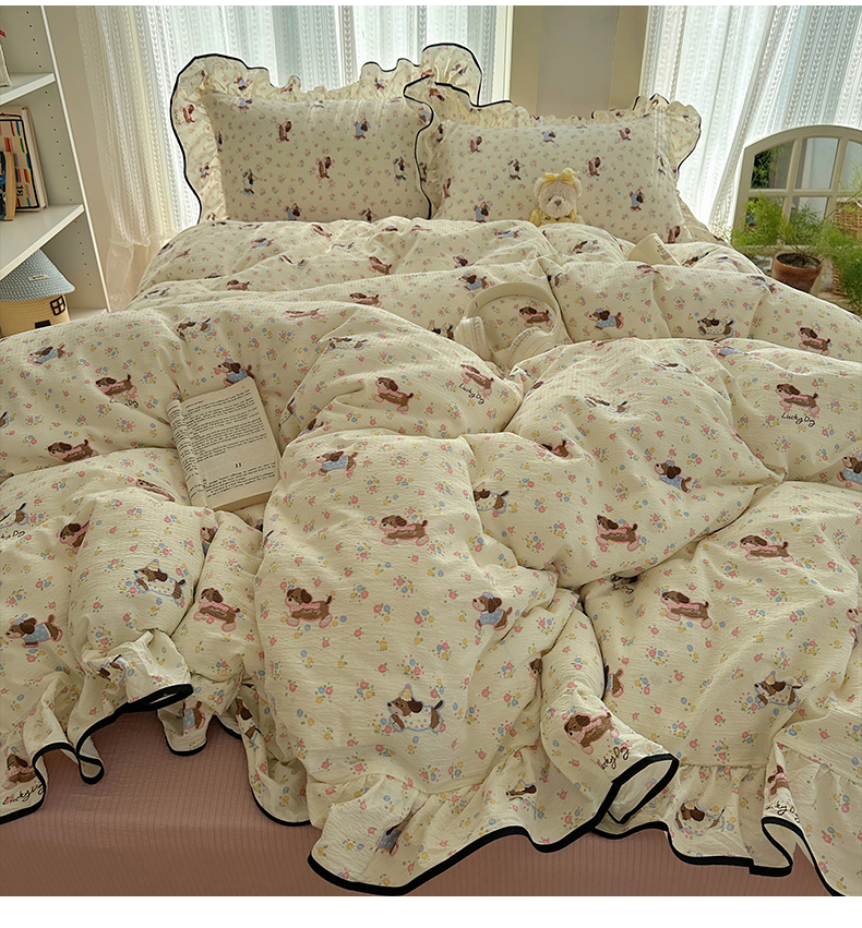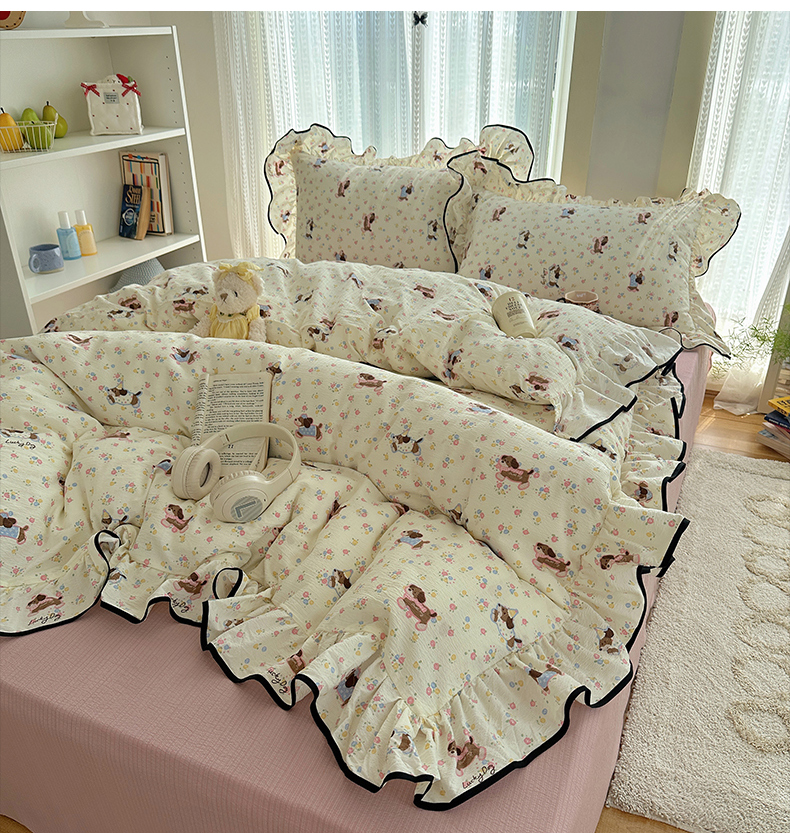 商品名称:红嘴企鹅 2025新款韩版双拼花边四件套 韩版-甜心小狗