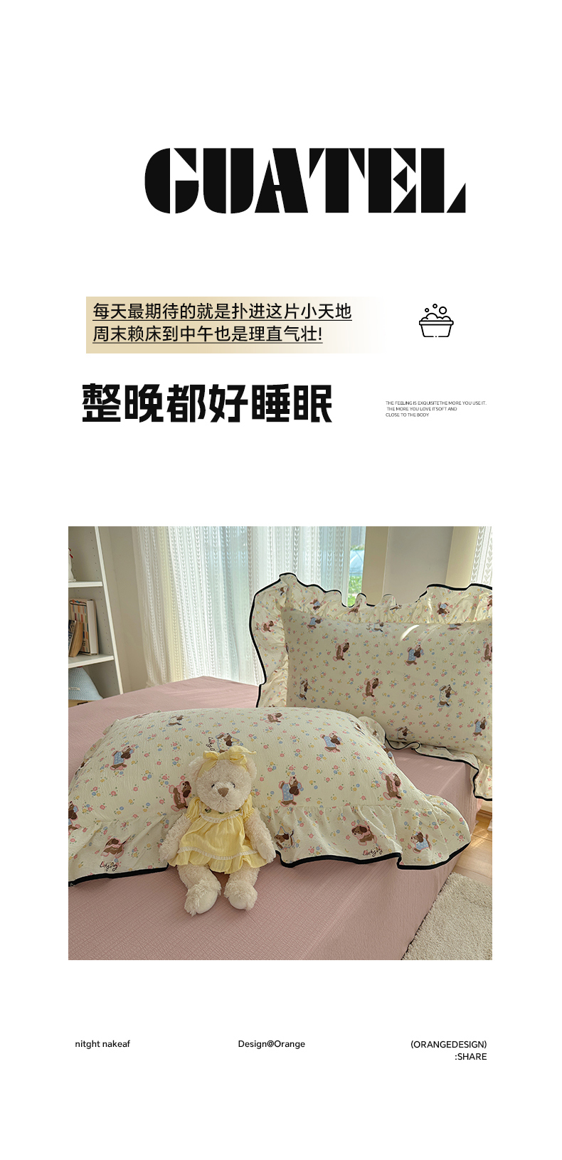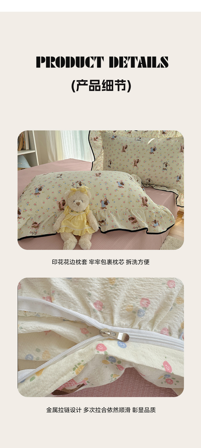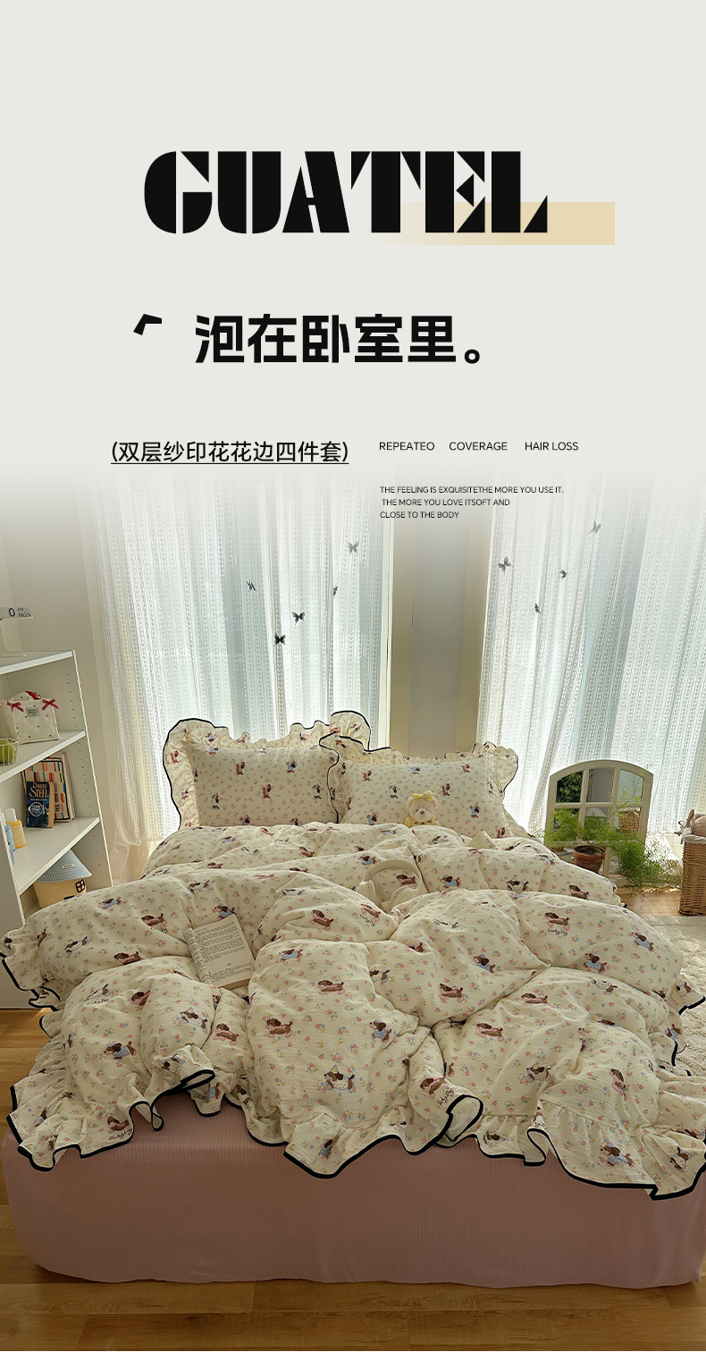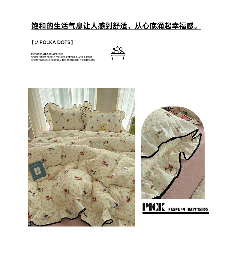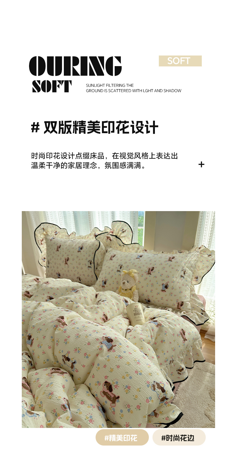 商品名称:红嘴企鹅 2025新款韩版双拼花边四件套 韩版-甜心小狗