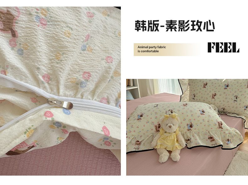 红嘴企鹅 2025新款韩版双拼花边四件套 韩版-甜心小狗