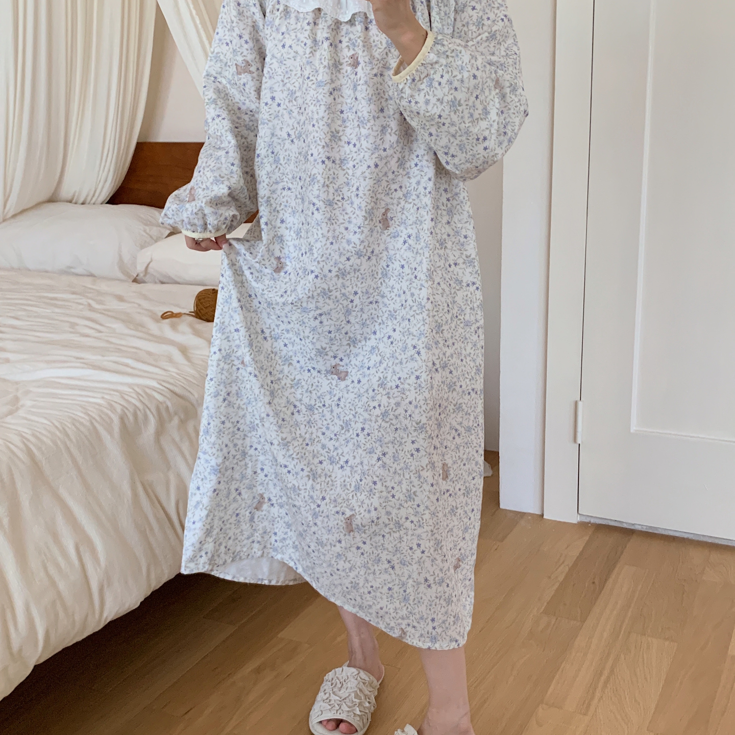 当前位置: 91家纺网 > 商品网购 > 居家日用 > 睡衣/家居服套装 > 纽约生活 2025新款有氧纱蕾丝长袖裙(会员-5) 蓝花兔