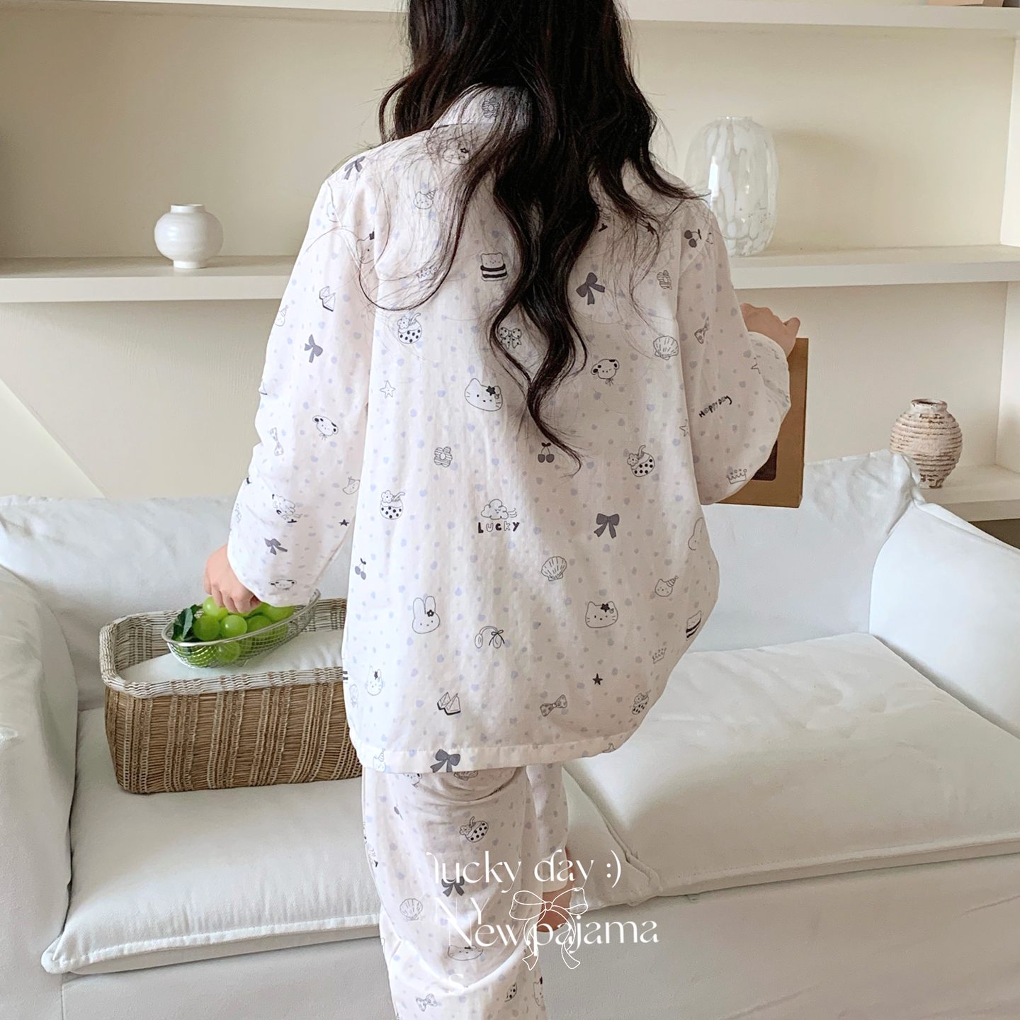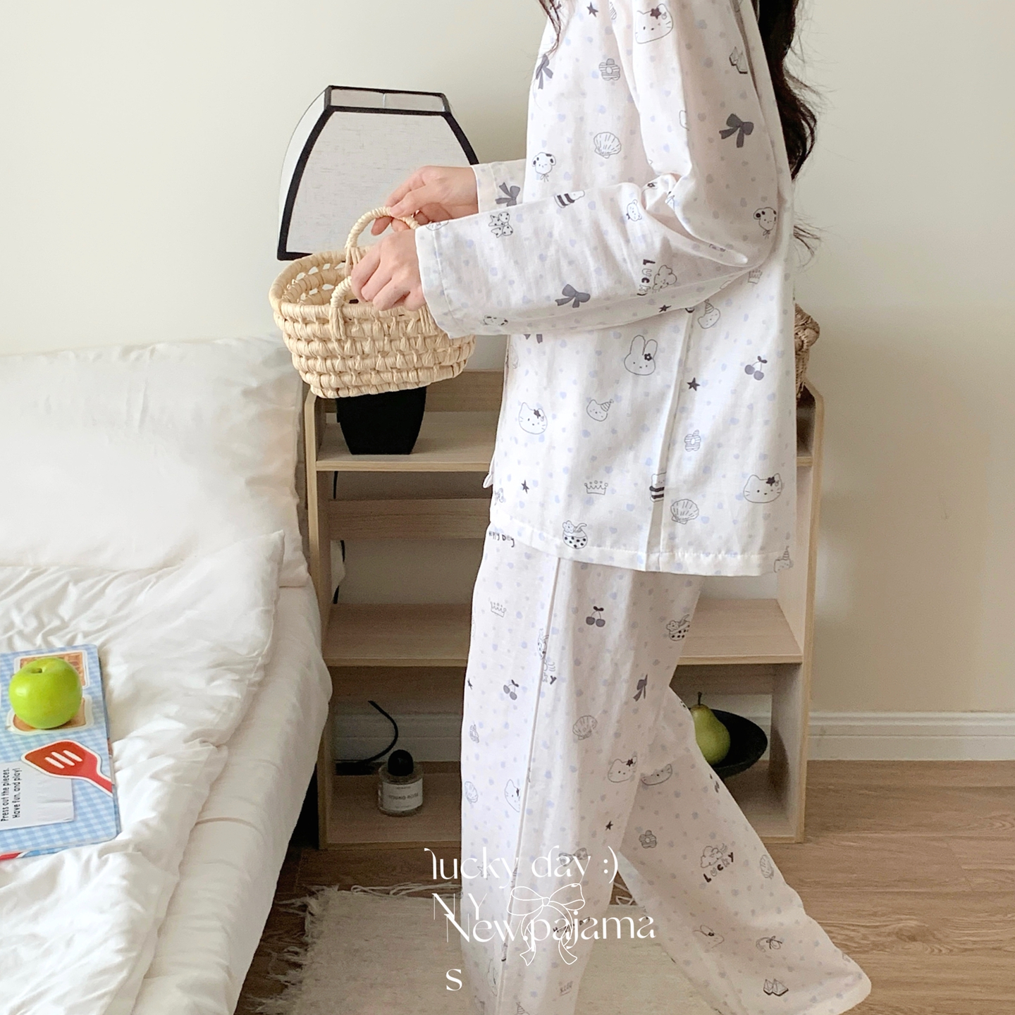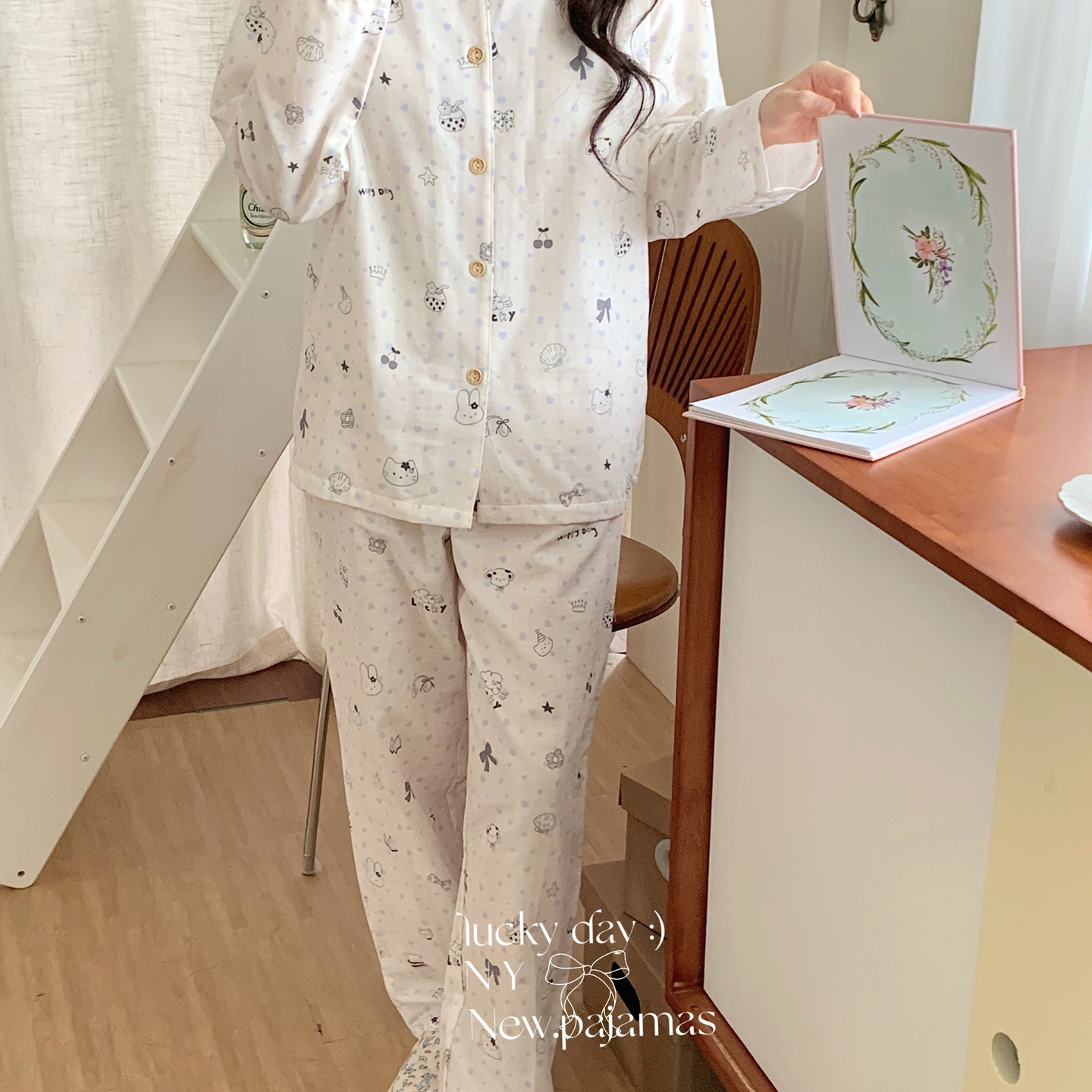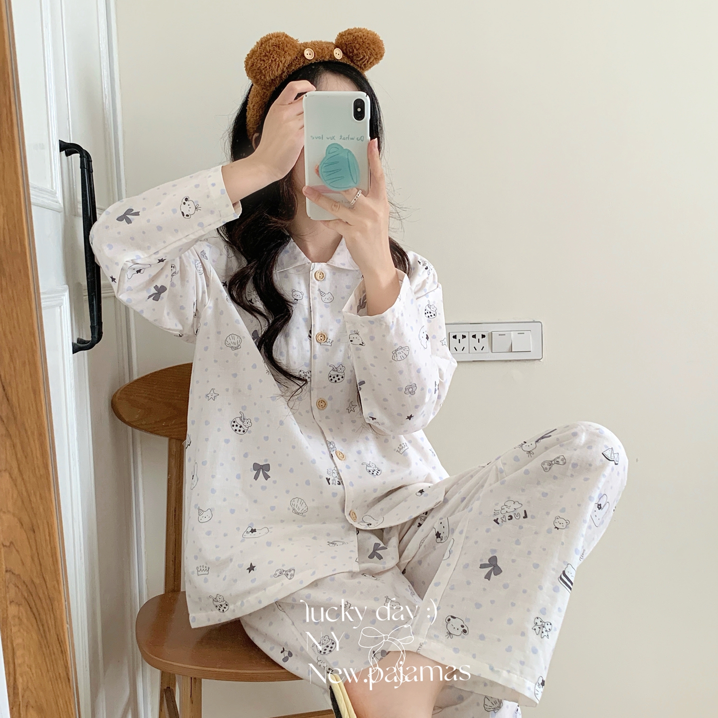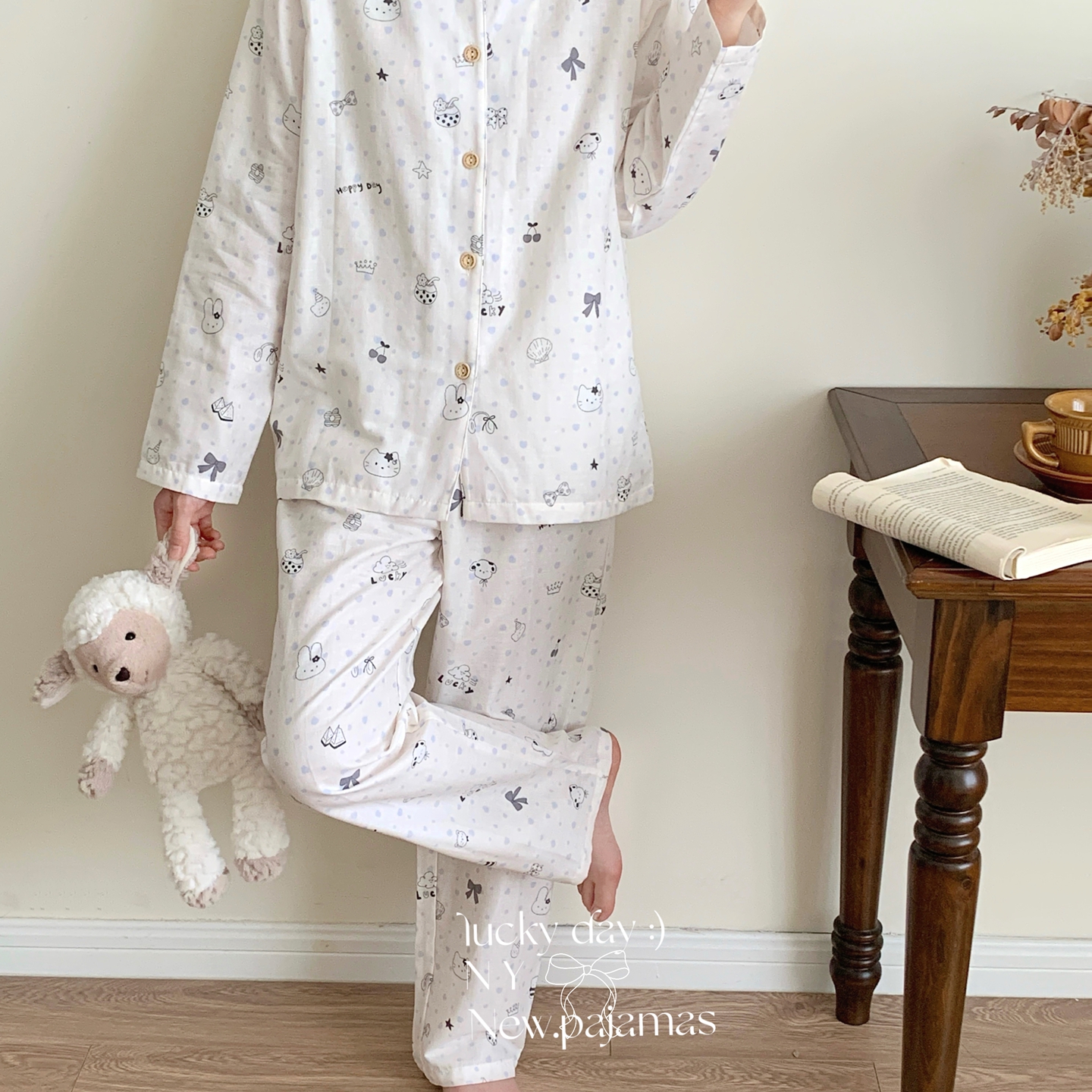 (总)纽约生活 2025新款绉布圆领开扣长袖长裤(会员-5),波比熊,黑碎花猫咪,蝴蝶结粉熊,花花狗,蓝碎花,塞纳花房