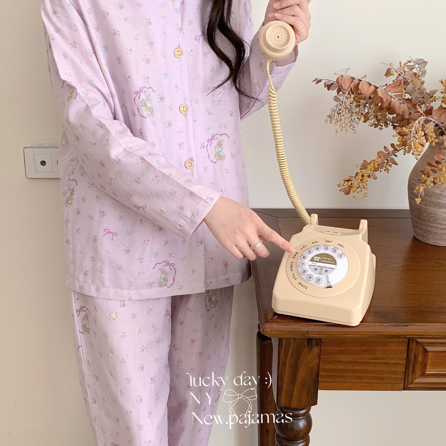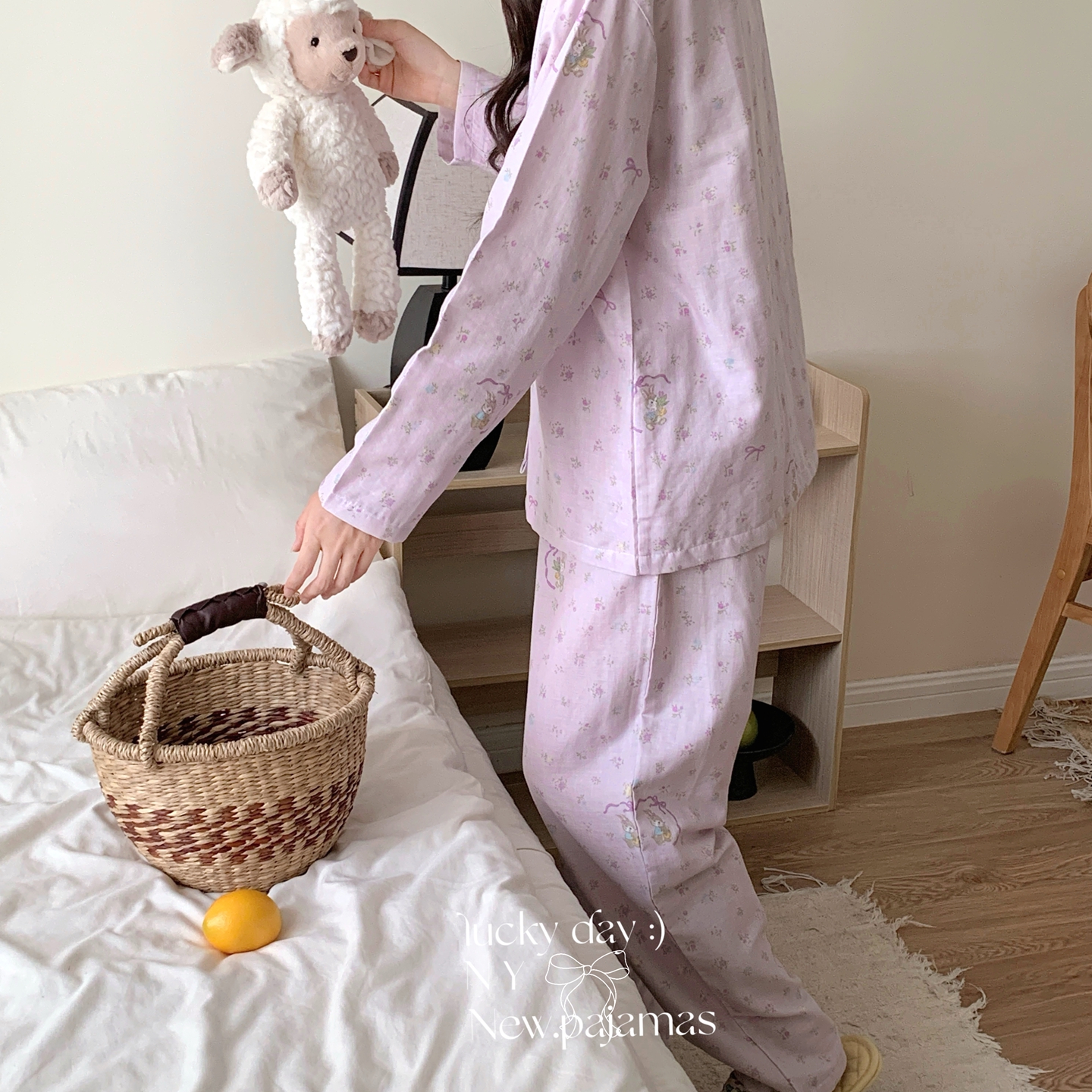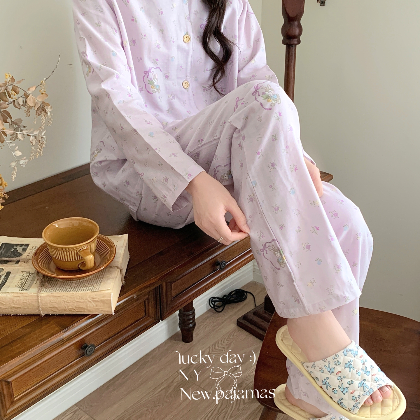 (总)纽约生活 2025新款绉布圆领开扣长袖长裤(会员-5),波比熊,黑碎花猫咪,蝴蝶结粉熊,花花狗,蓝碎花,塞纳花房