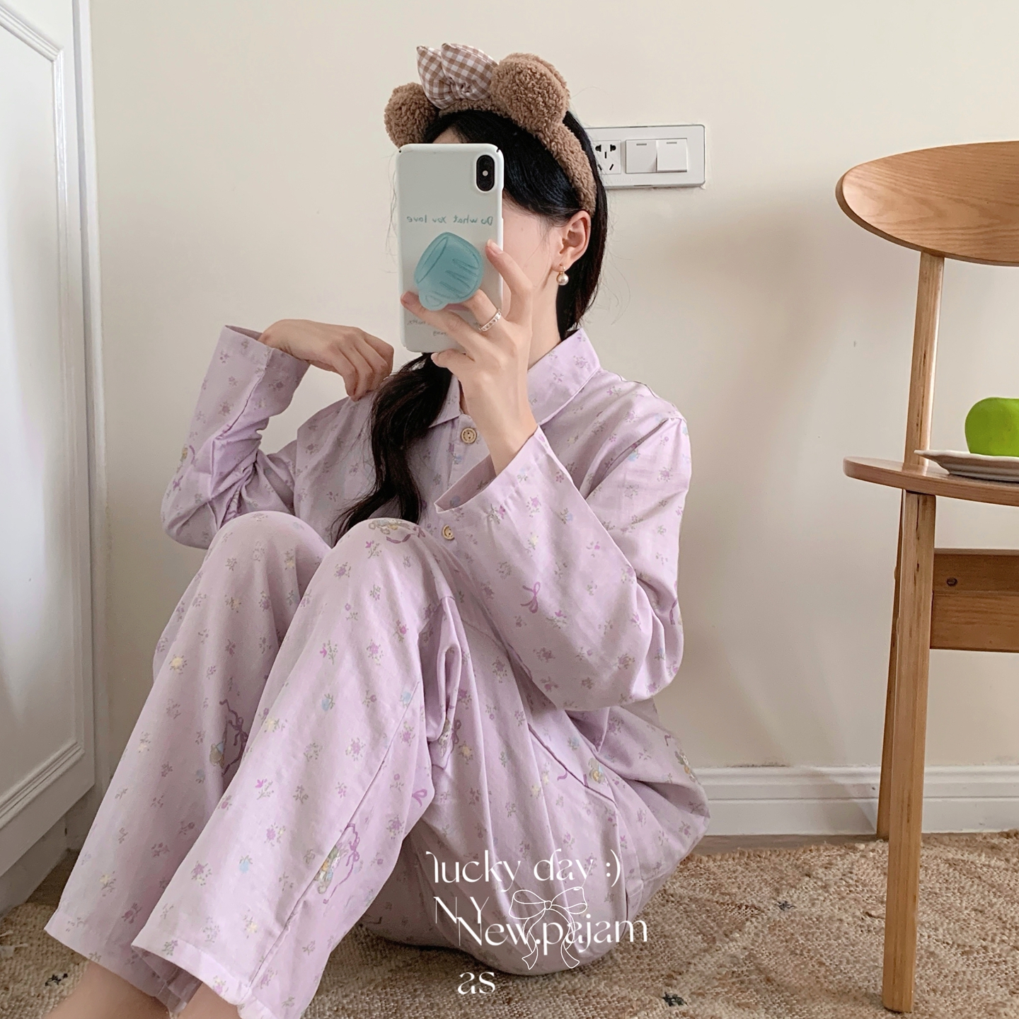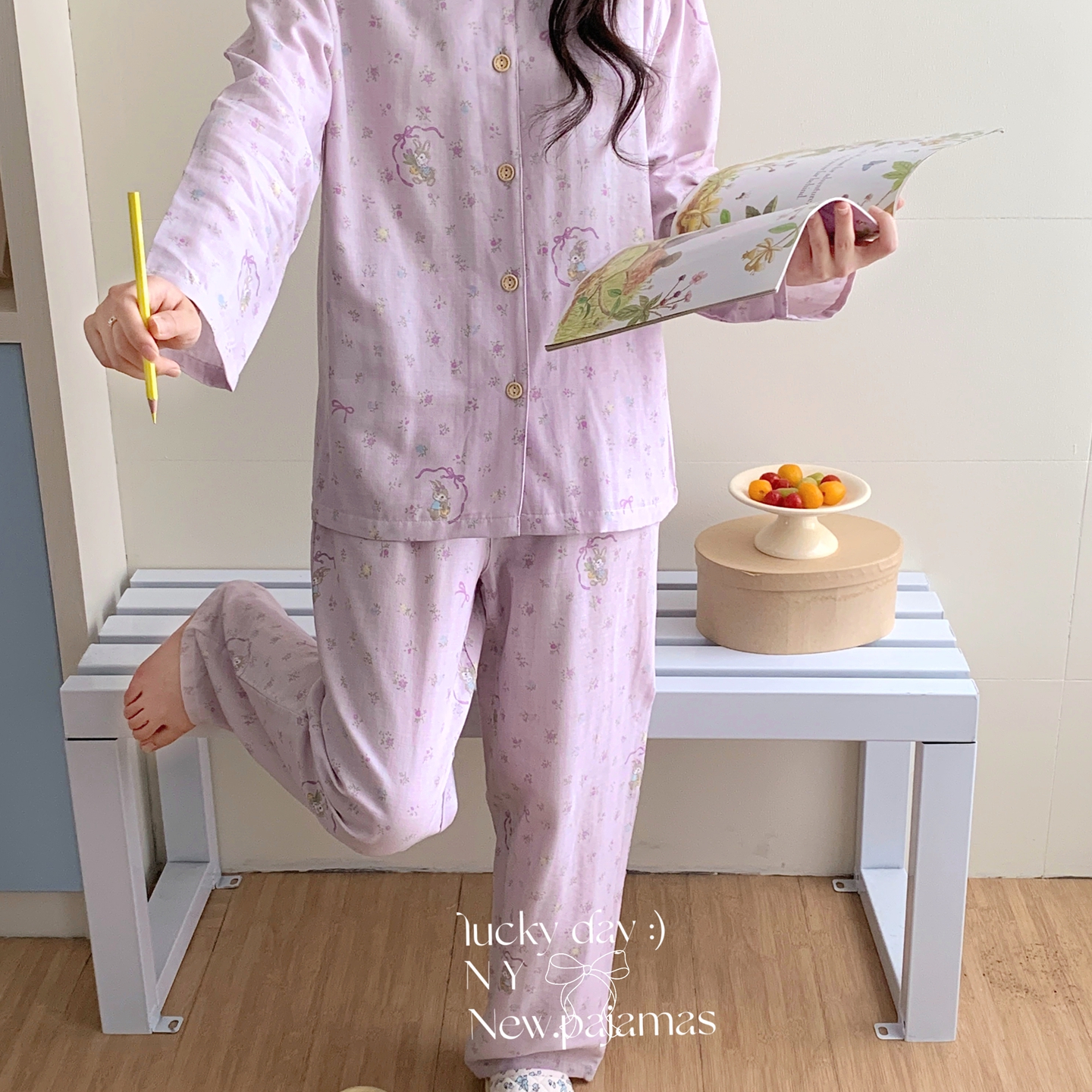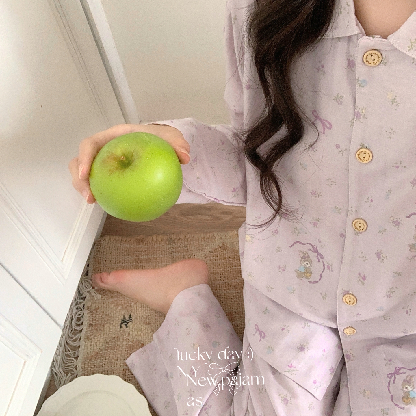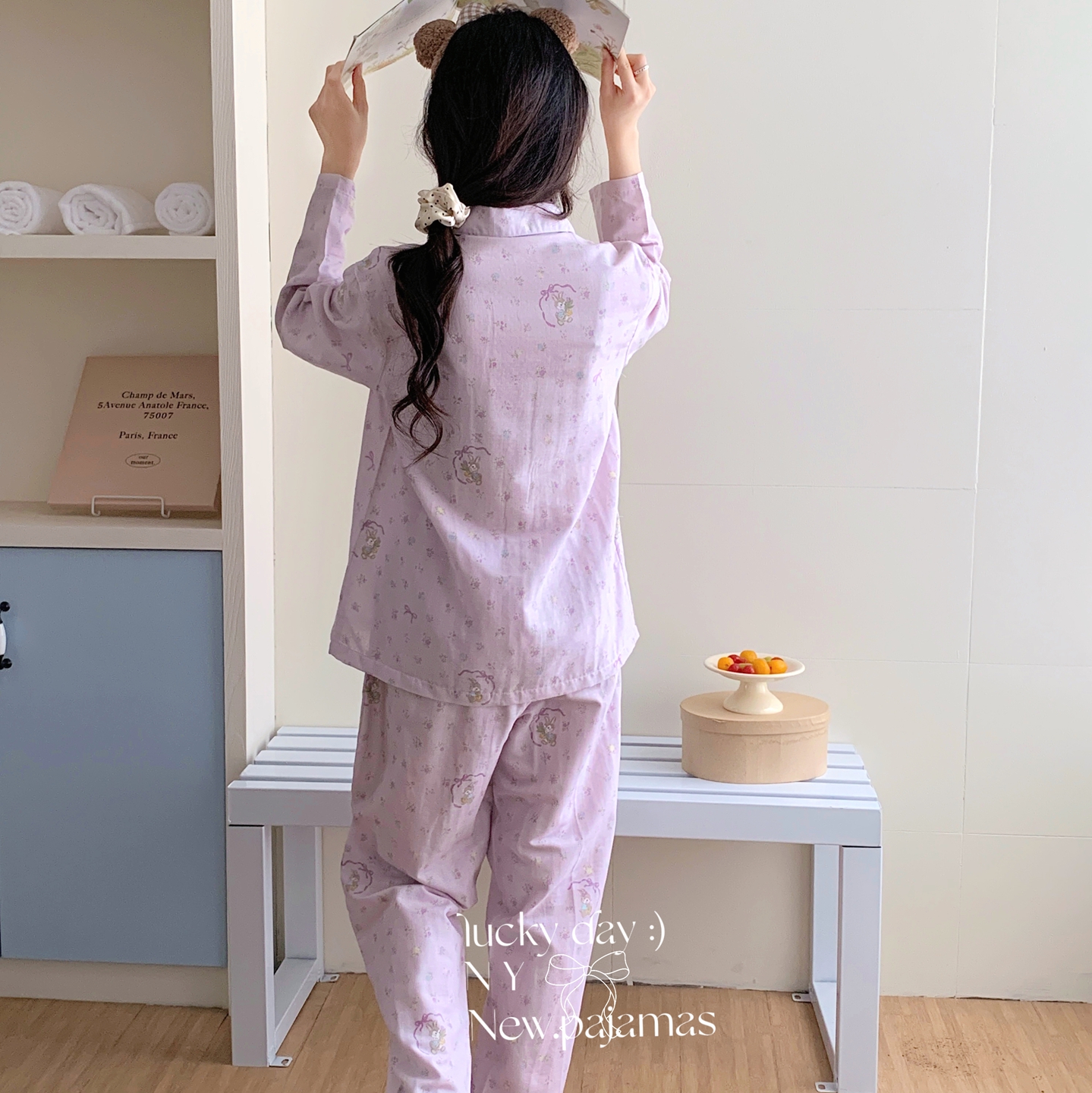 (总)纽约生活 2025新款绉布圆领开扣长袖长裤(会员-5),波比熊,黑碎花猫咪,蝴蝶结粉熊,花花狗,蓝碎花,塞纳花房