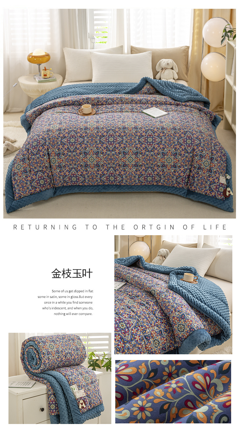 • 91家纺网 家纺一手货源 找家纺 锦鹭被业 2025新款AB版舒适全棉纯棉豆豆绒被被子被芯 绿玫瑰