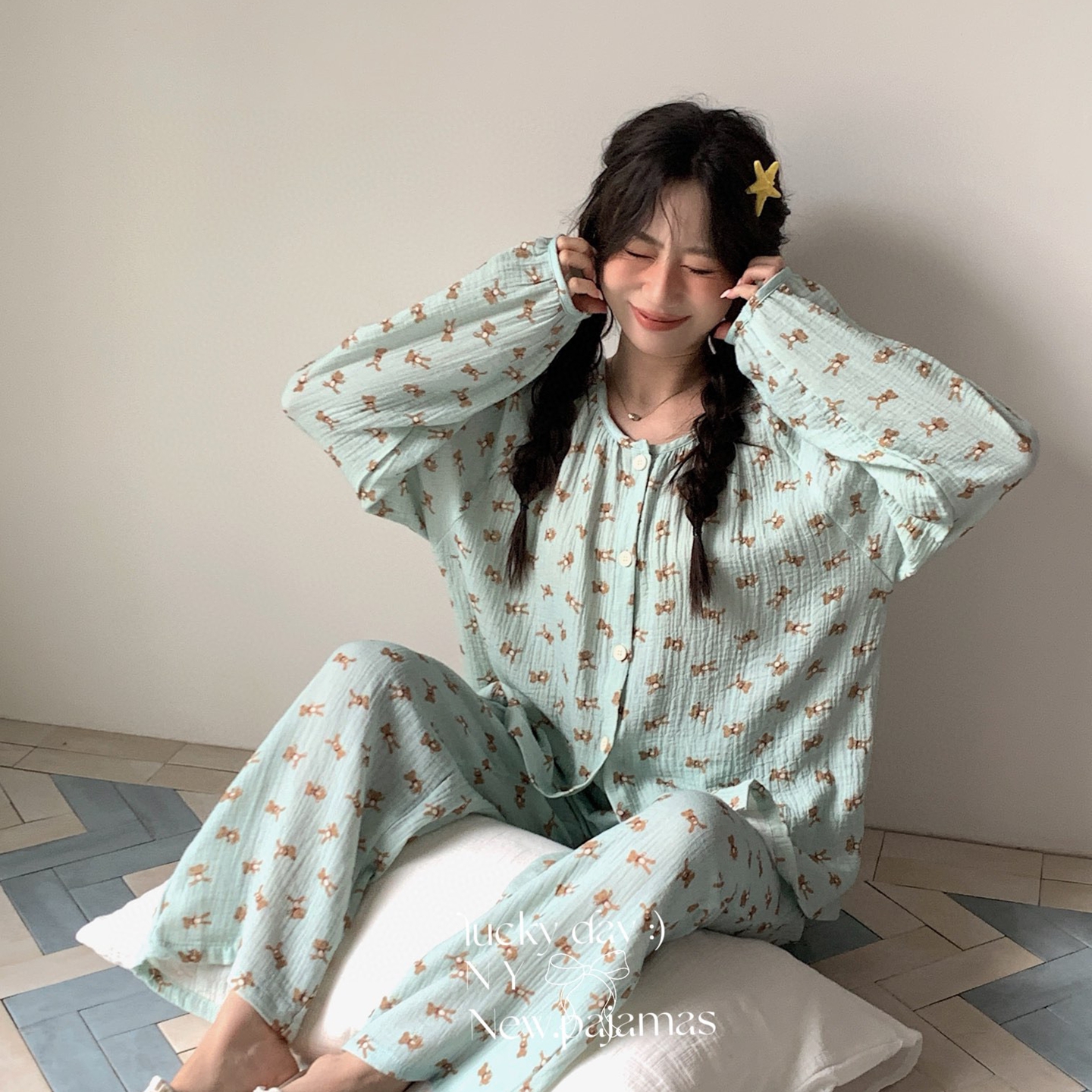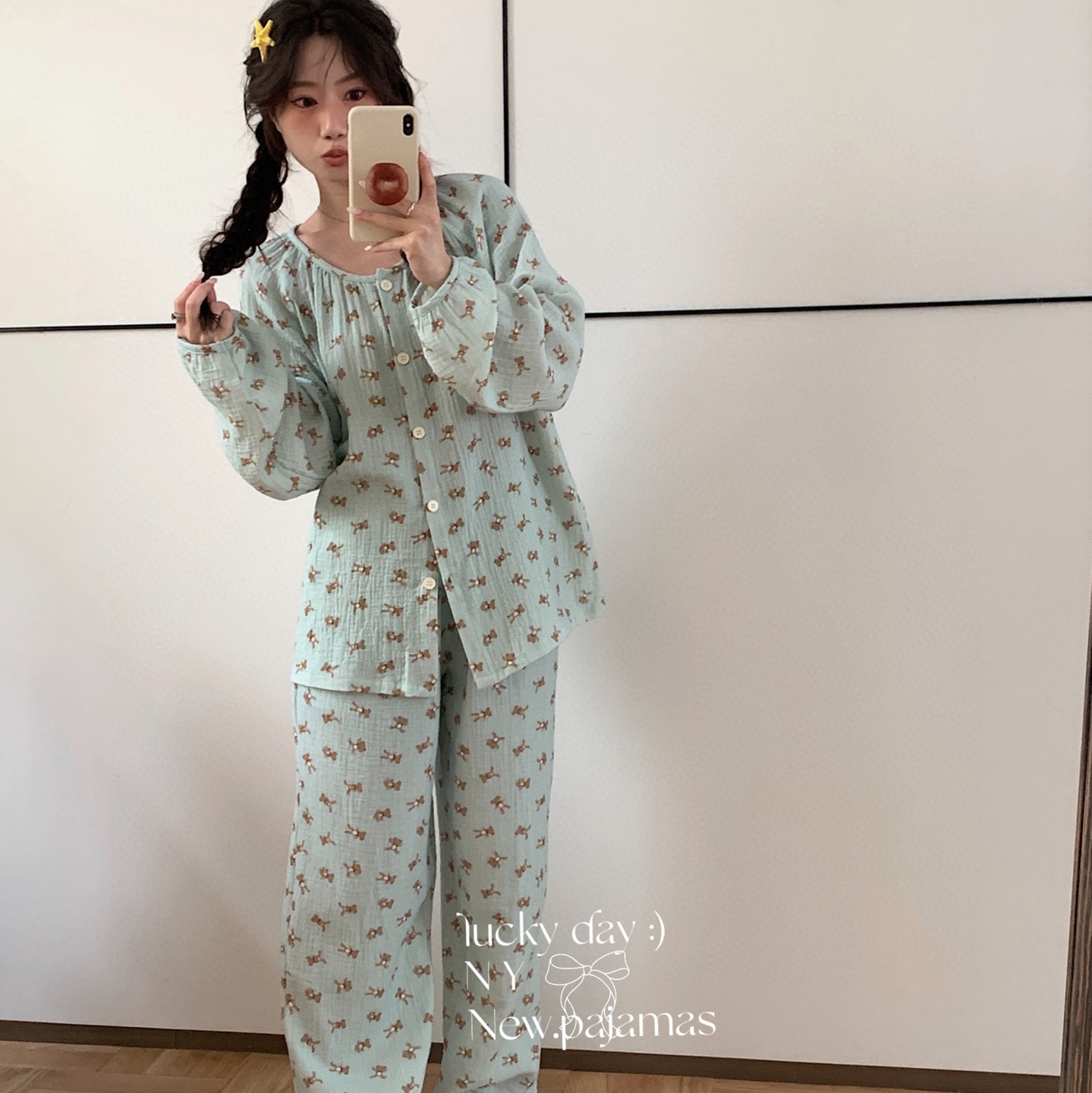 当前位置: 91家纺网 > 商品网购 > 居家日用 > 睡衣/家居服套装 > 纽约生活 2025新款绉布圆领开扣长袖长裤(会员-5) 波比熊