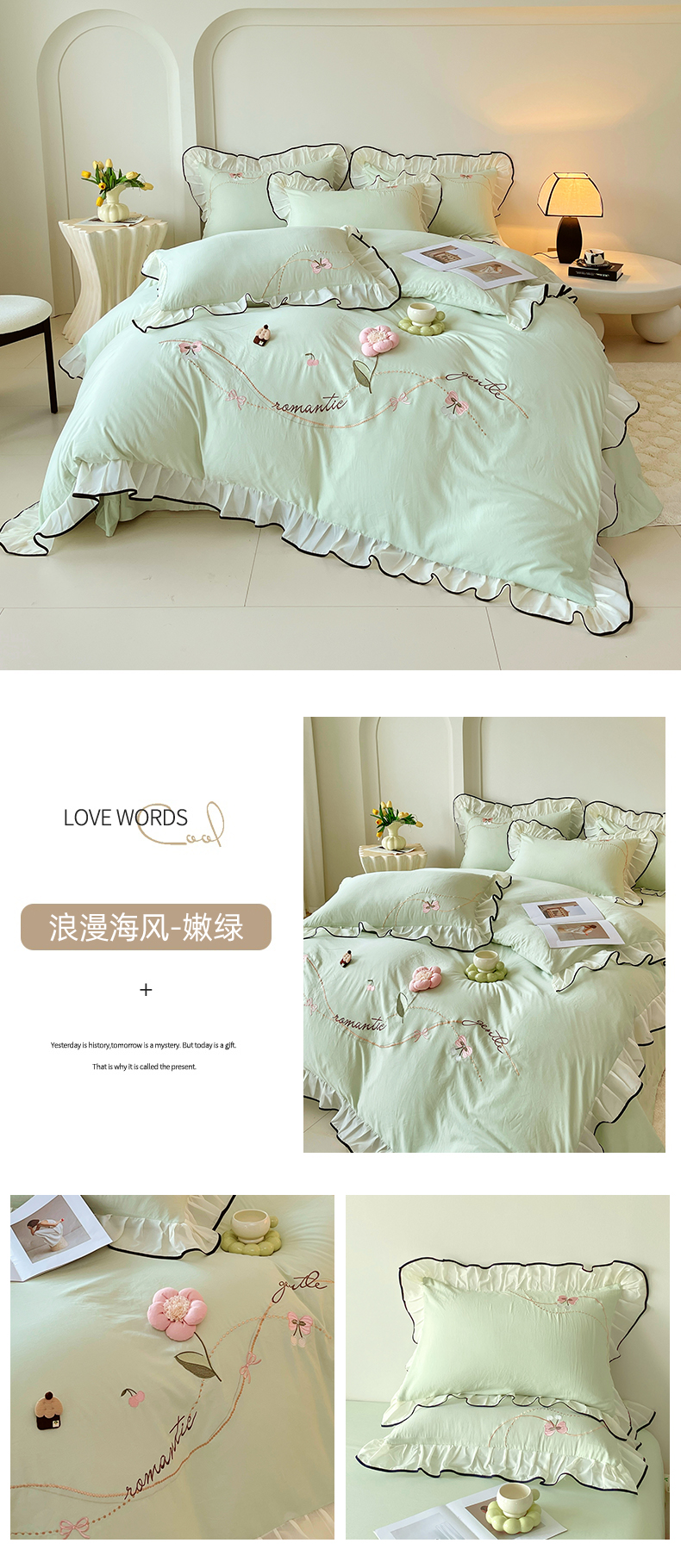 当前位置: 91家纺网 > 商品网购 > 床品套件 > 四件套 > 其它四件套 > 大麦乐田 2025新款公主风水洗糯小棉少女心柔软立体花刺绣蕾丝花边四件套 浪漫海风-嫩玉