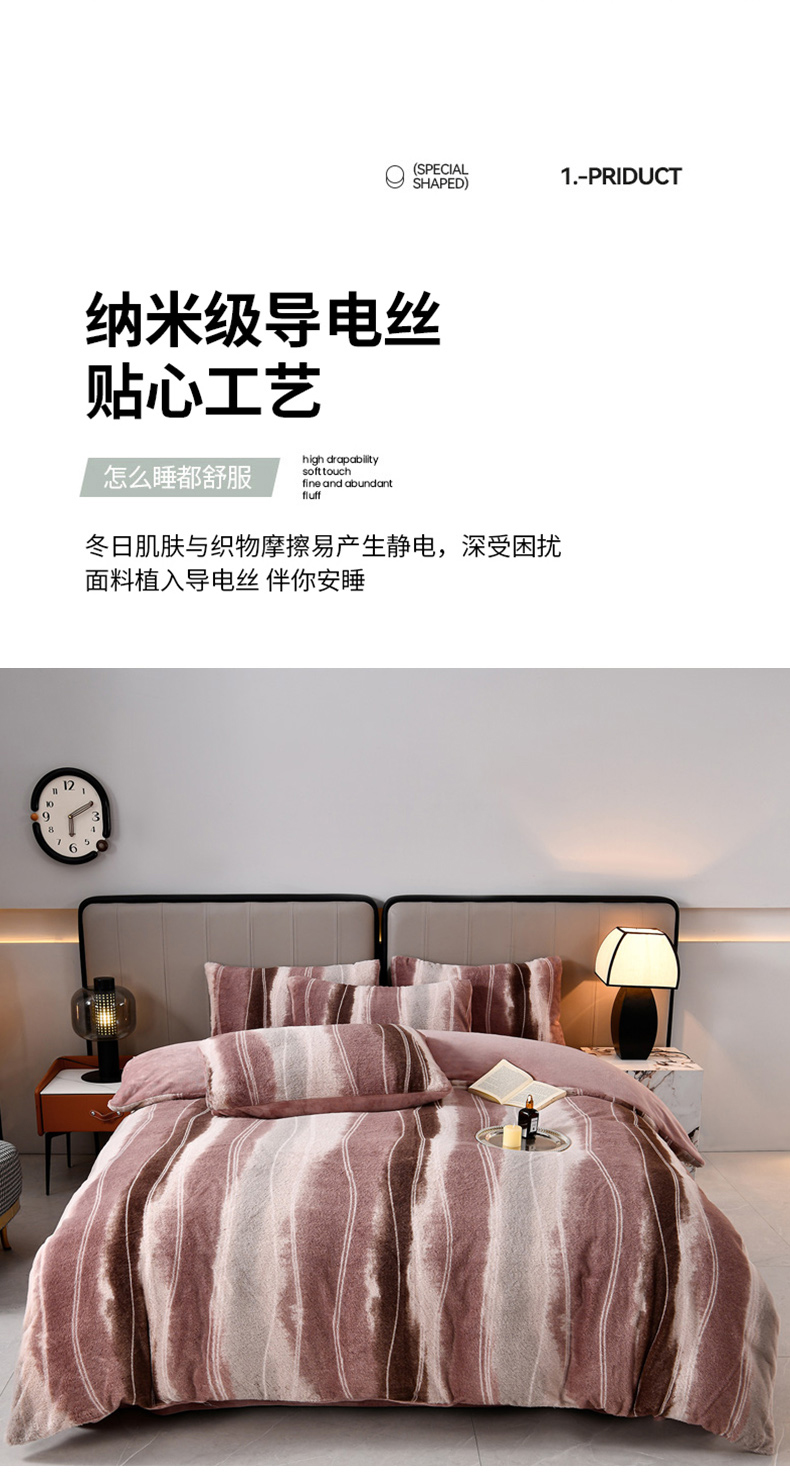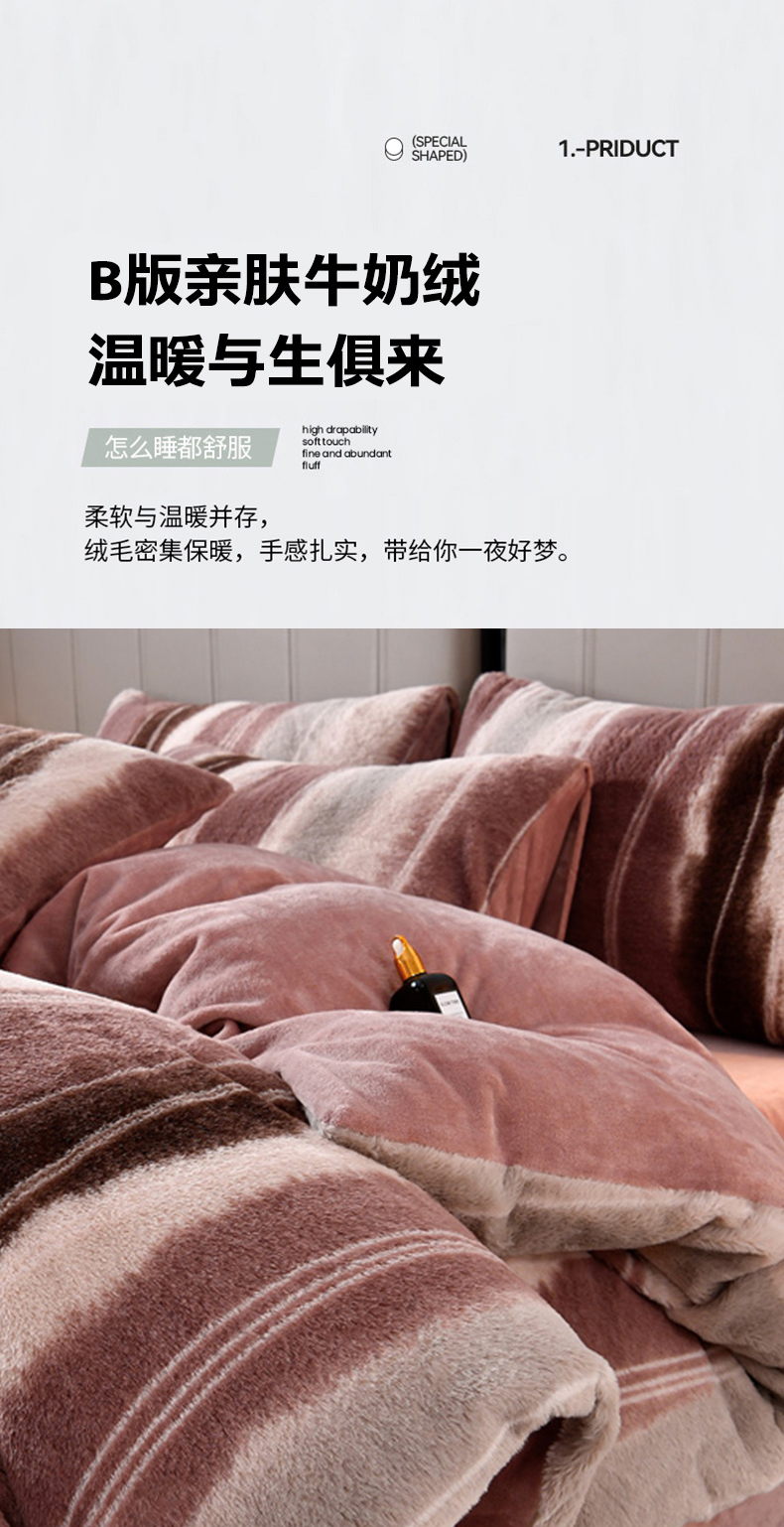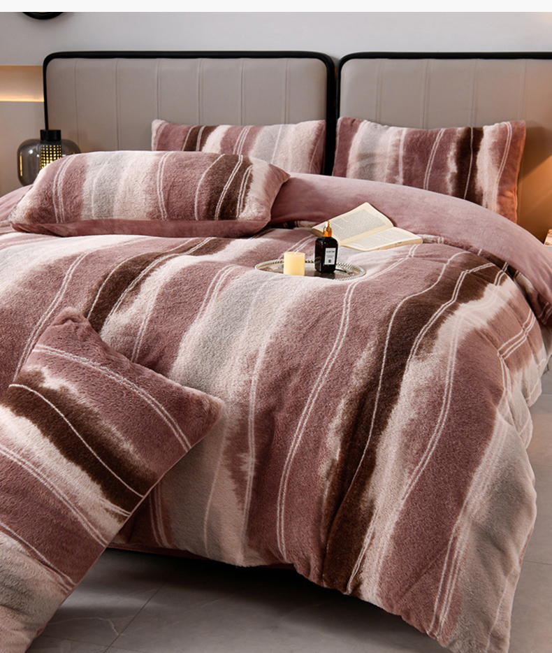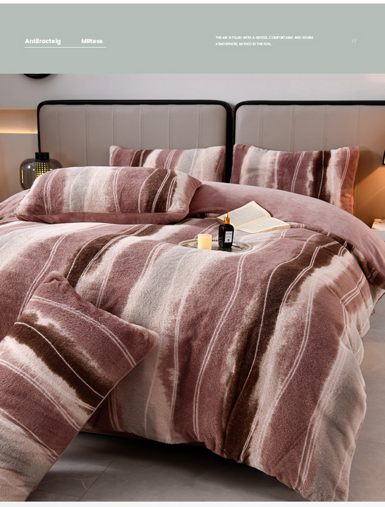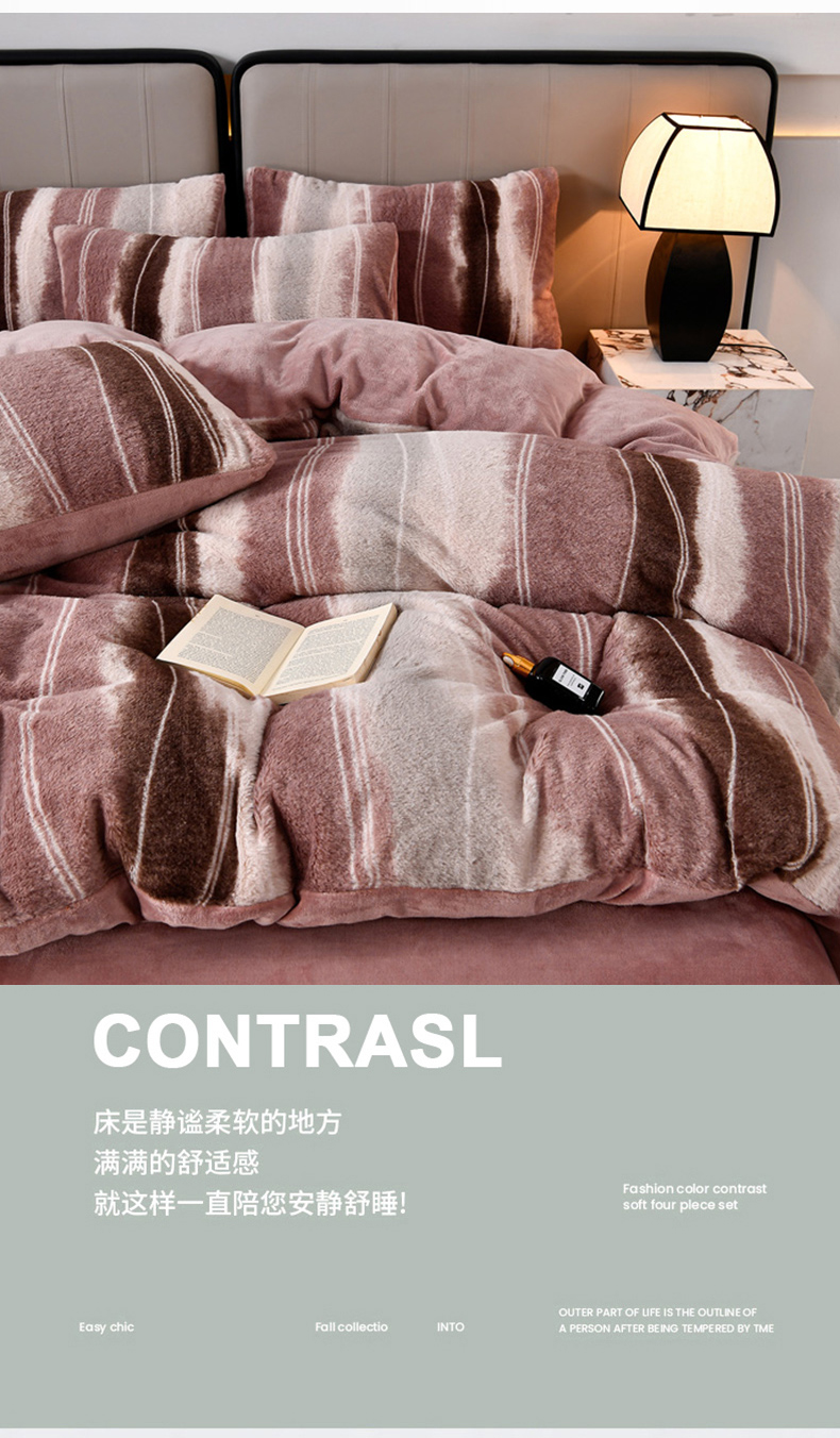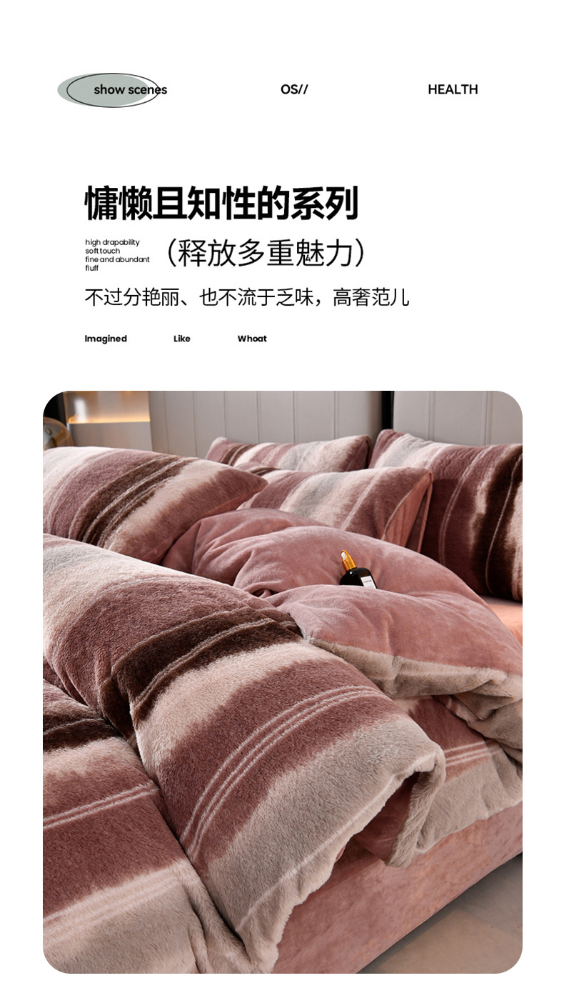 商品名称:梦之星 2025新款加厚8.5斤轻奢兔毛绒皮草绒牛奶绒四件套系列 轻奢-条纹
