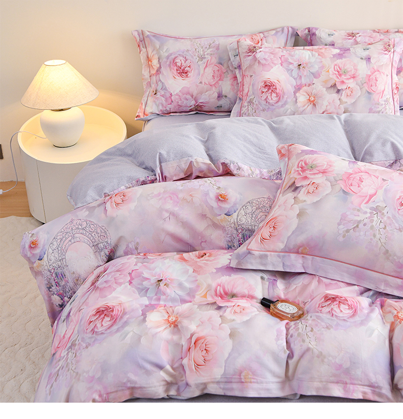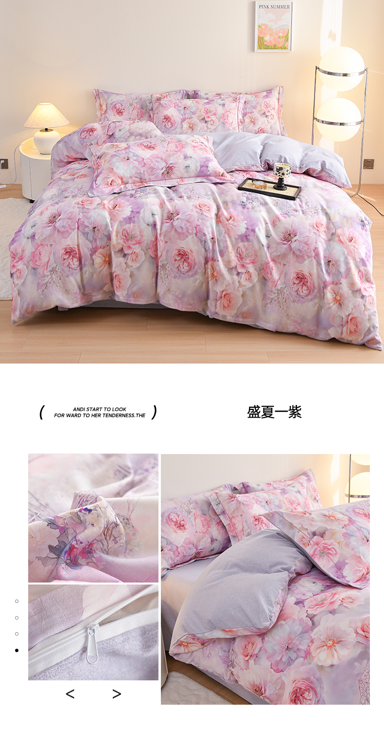 铭浩家纺 2025新款全棉纯棉数码印花四件套 盛夏-紫