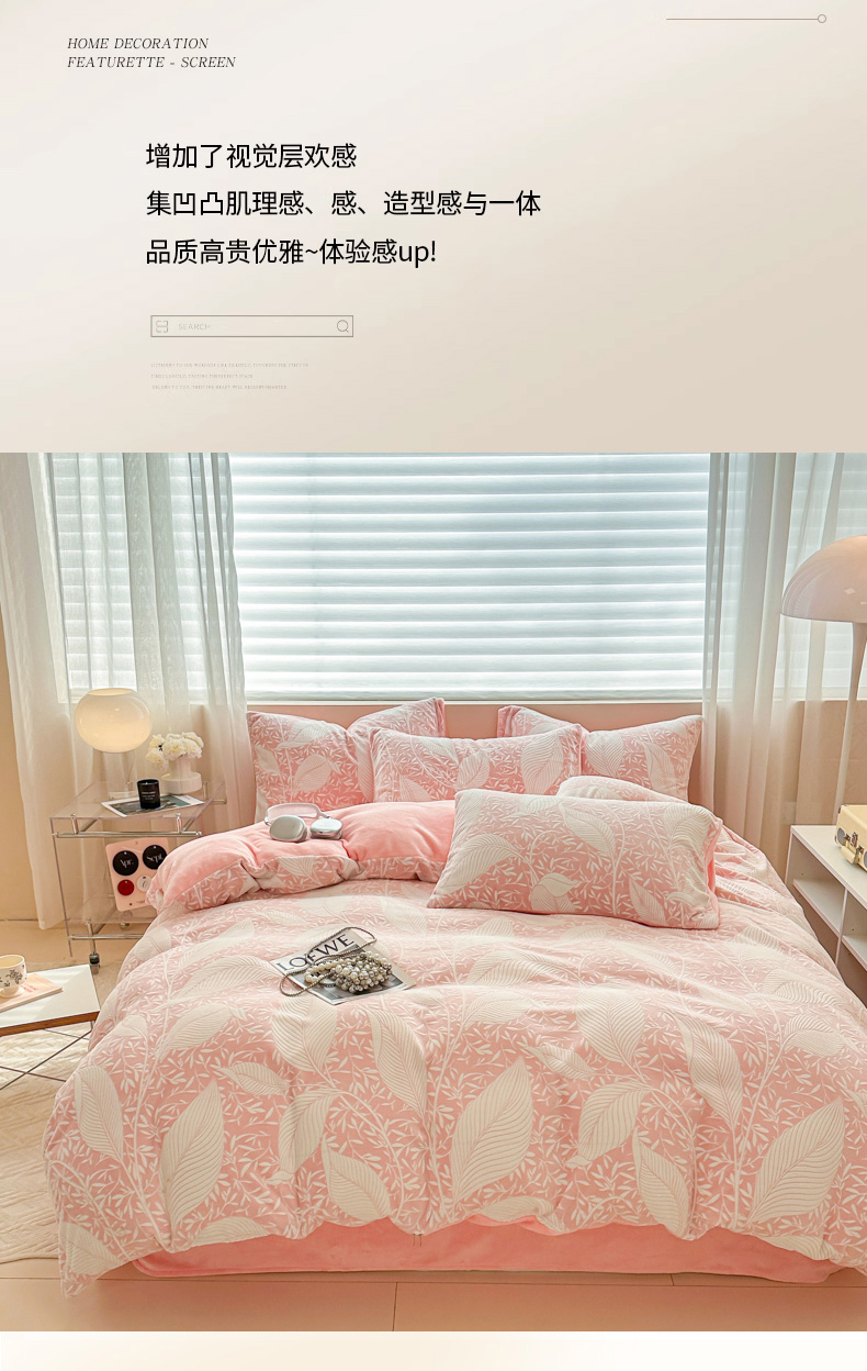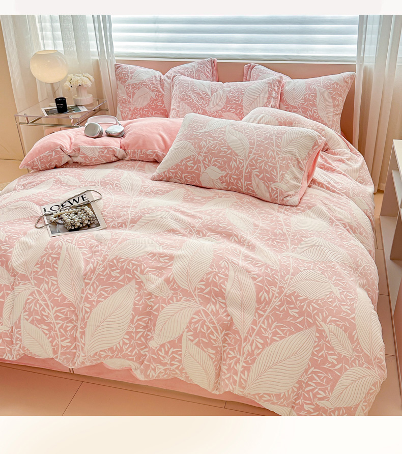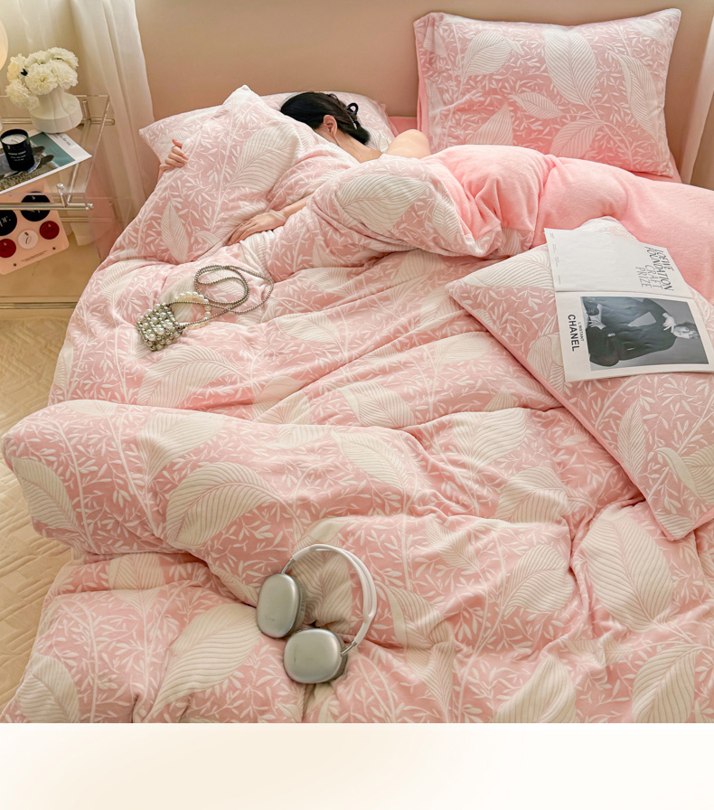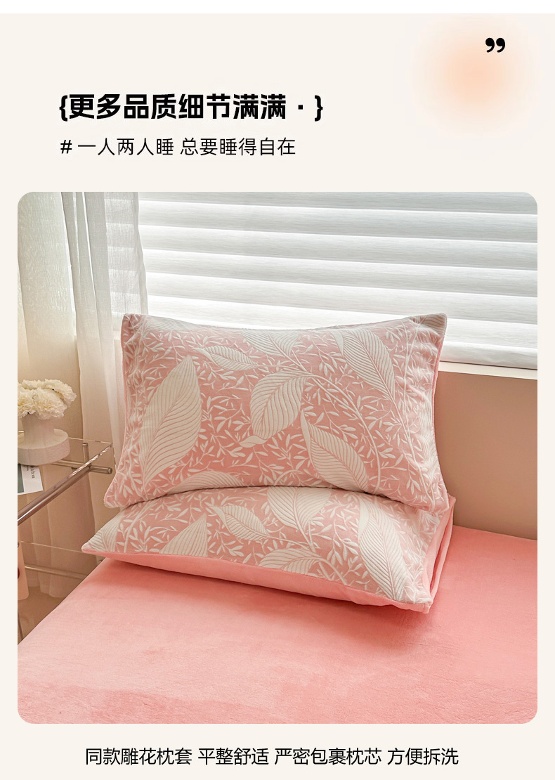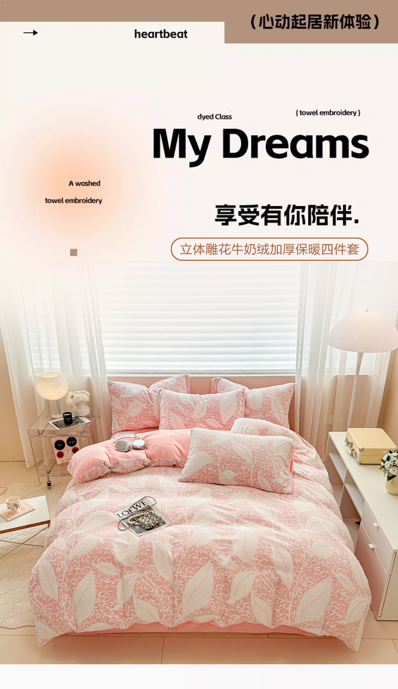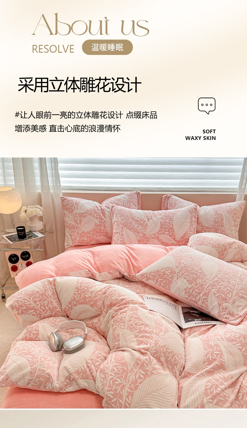 商品名称:眠博士 2025新款立体雕花牛奶绒加厚保暖四件套 立体雕花-千叶粉