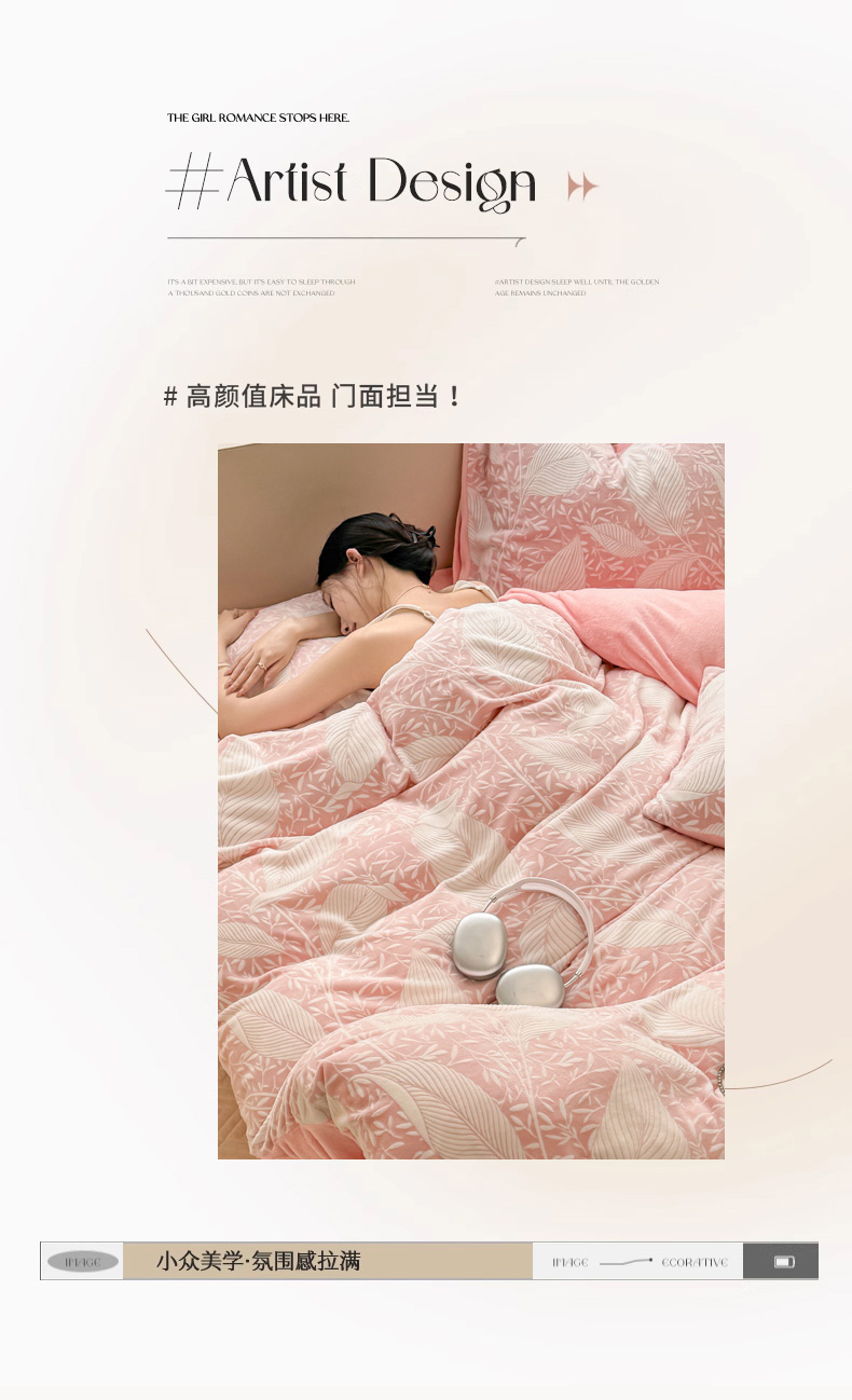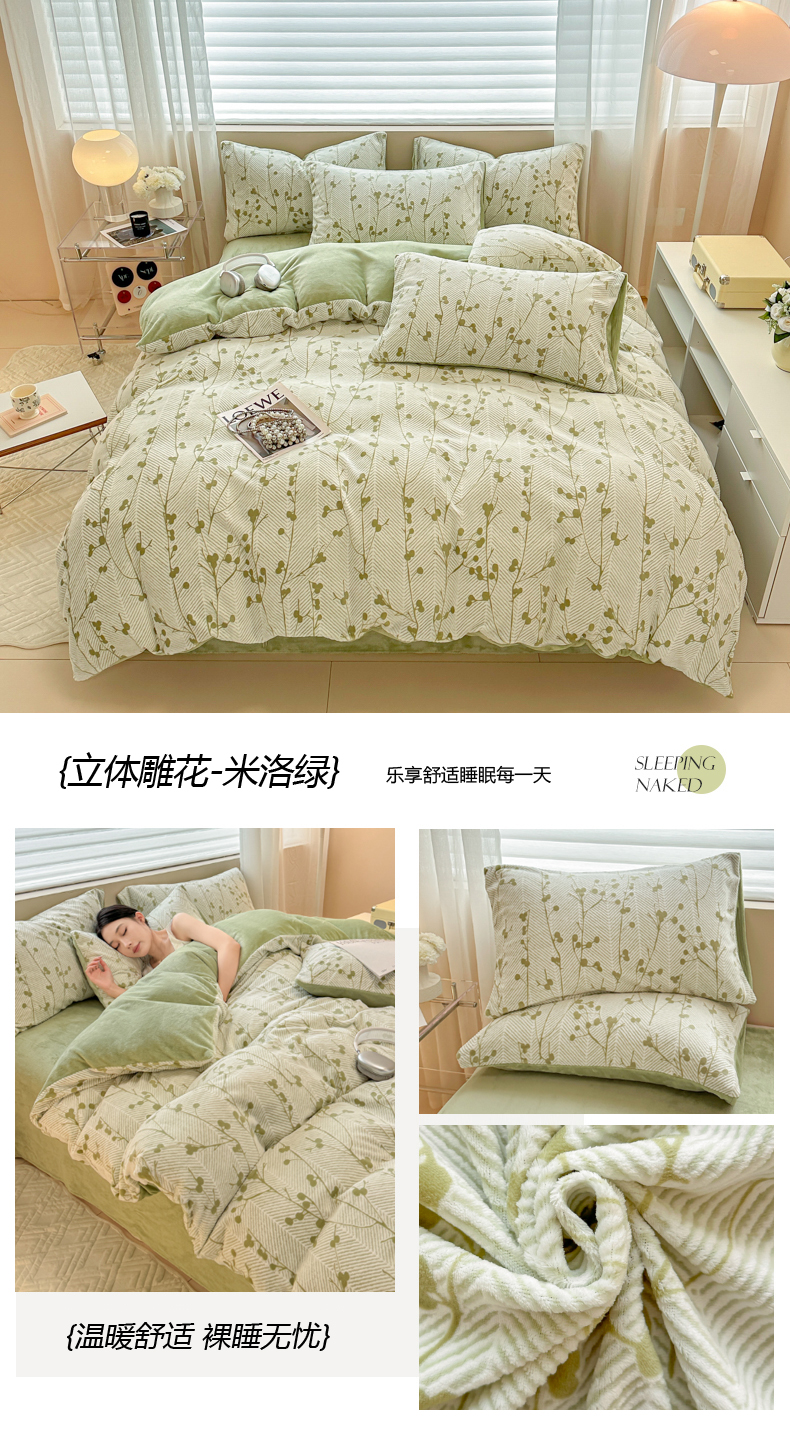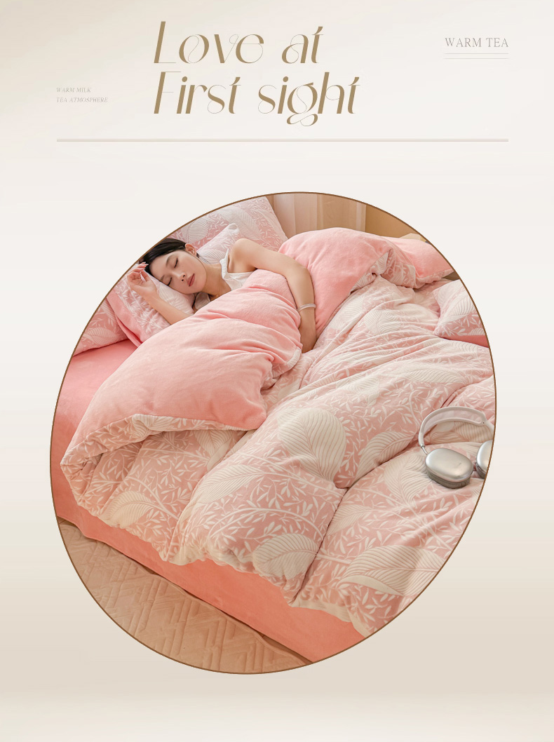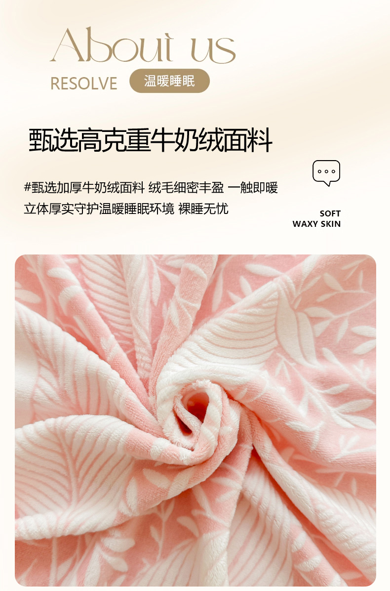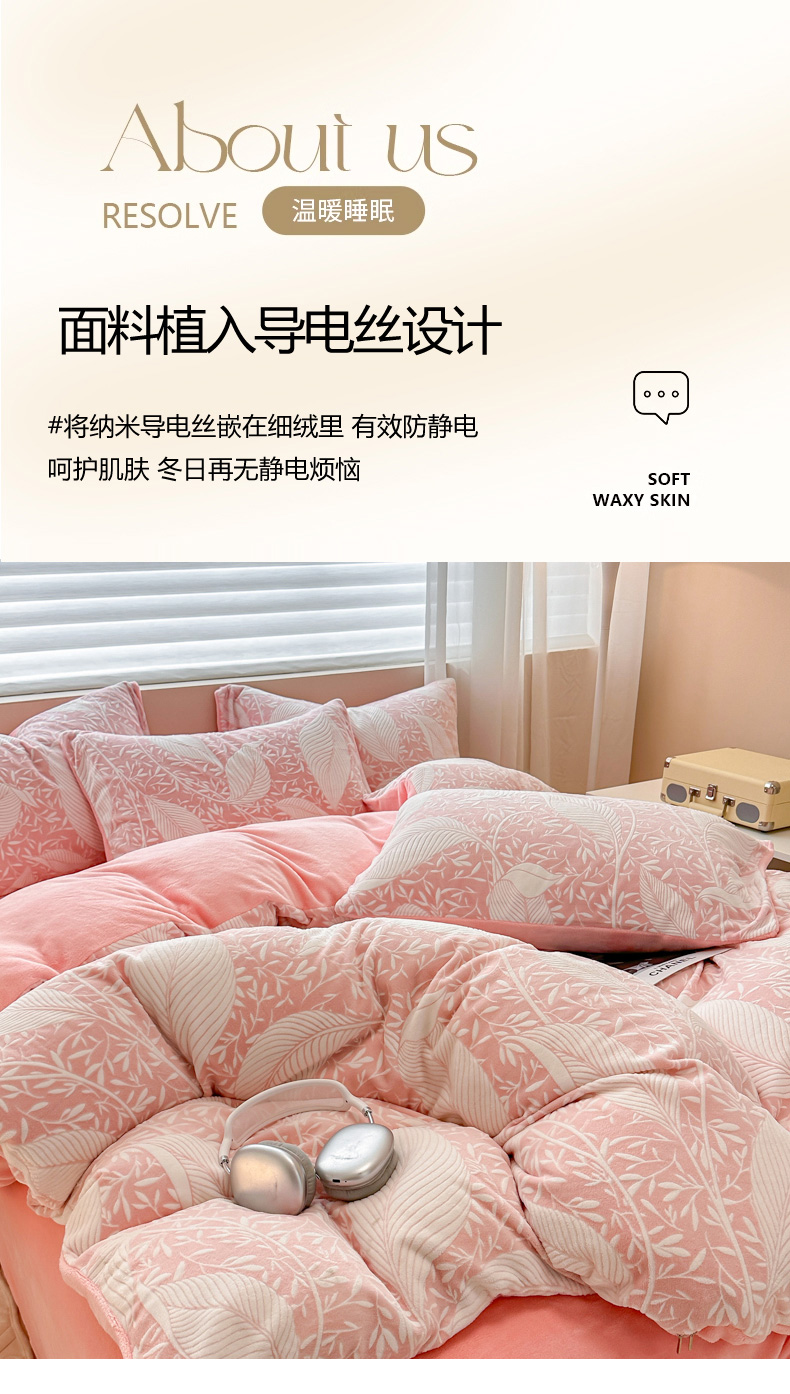 商品名称:眠博士 2025新款立体雕花牛奶绒加厚保暖四件套 立体雕花-千叶粉