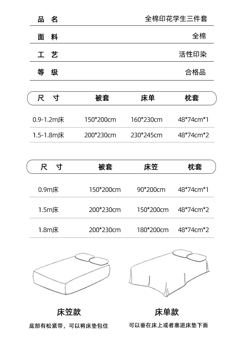 【床单款】0.9三件套-被套150x200 | ¥68.00 |