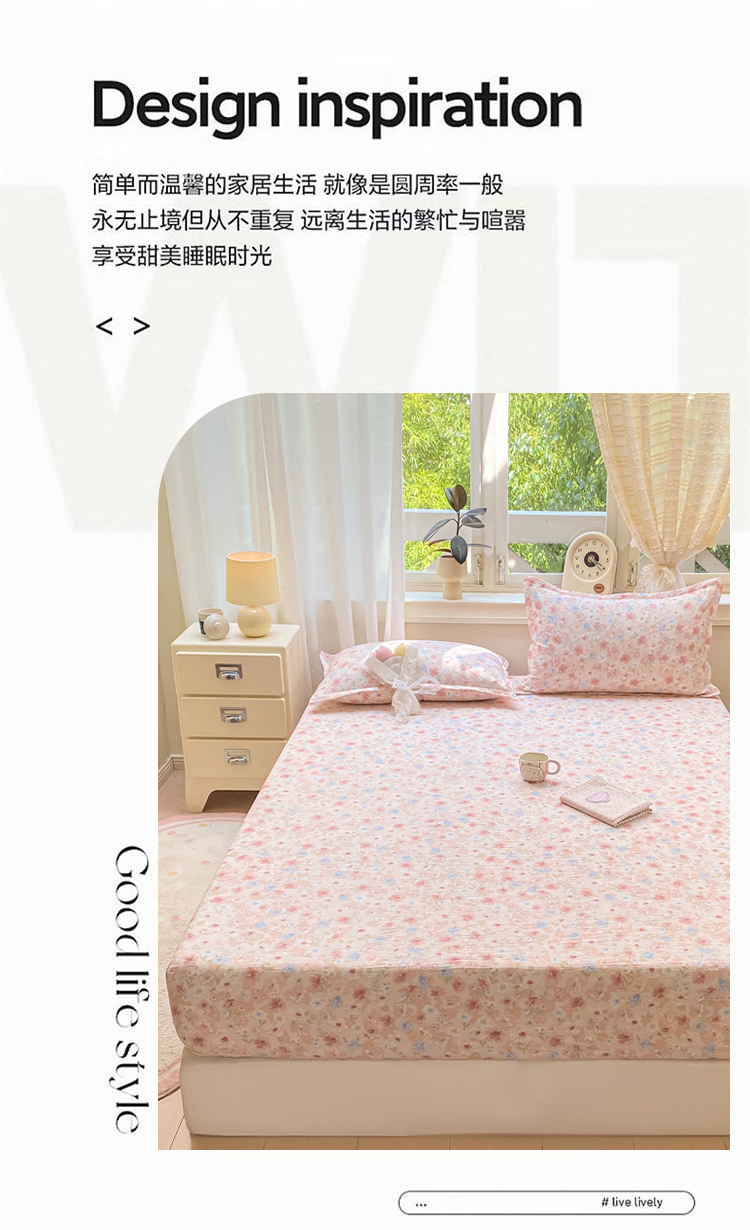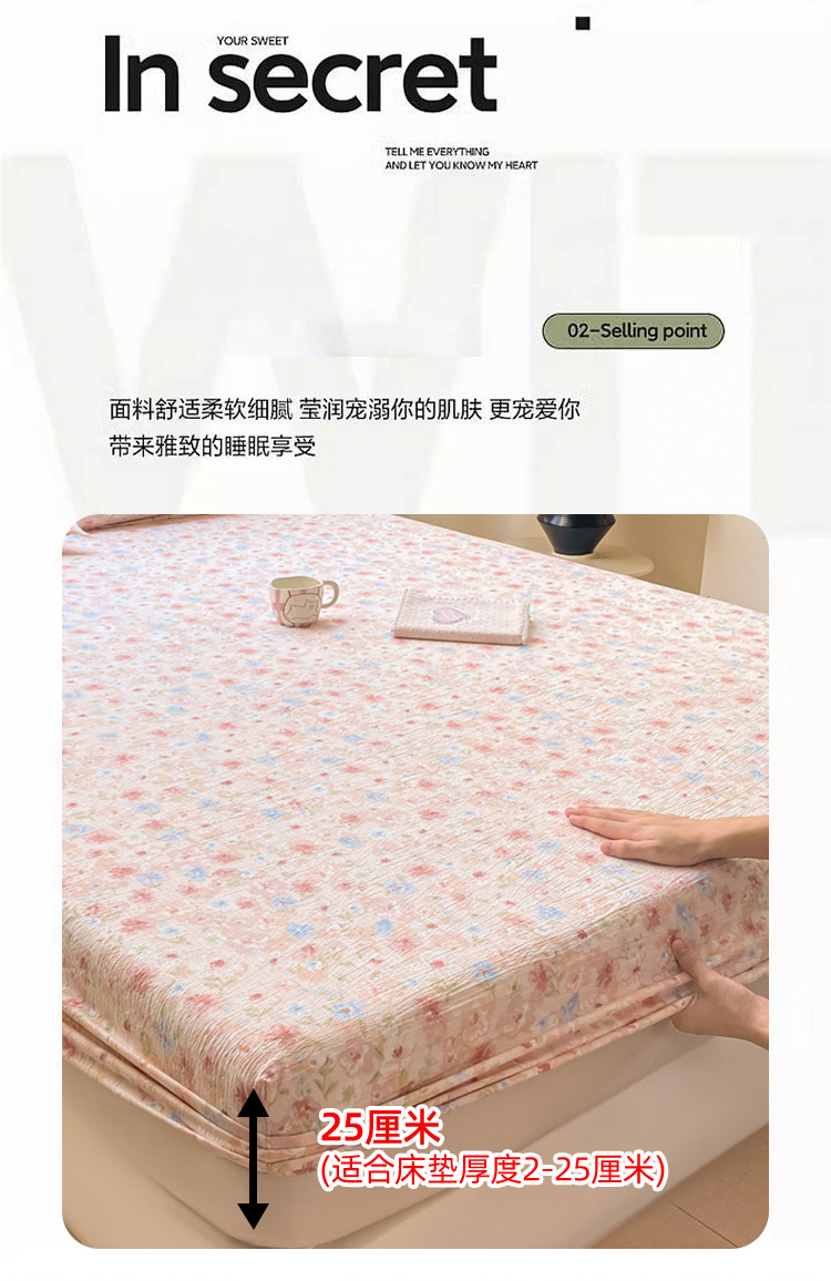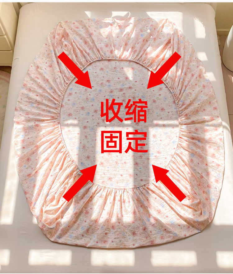• 91家纺网 家纺一手货源 找家纺 丝芙妮家居(原乐视家纺) 2026新款A类皱皱纱亲肤木棉床笠-系列二粉黛