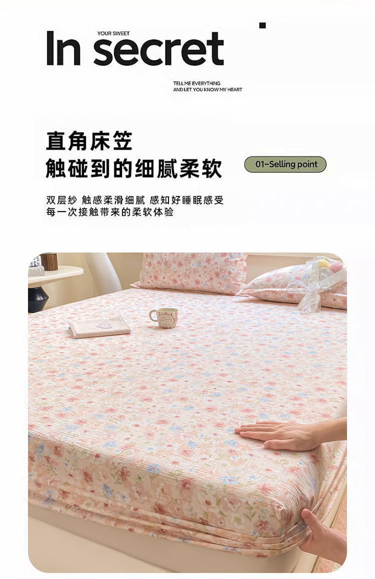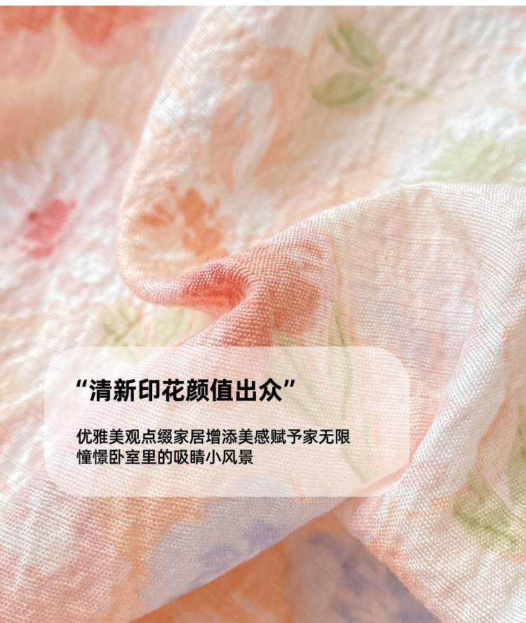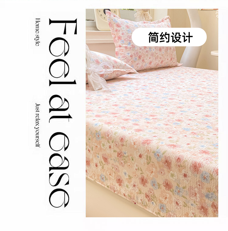丝芙妮家居(原乐视家纺) 2026新款A类皱皱纱亲肤木棉床笠-系列二粉黛
