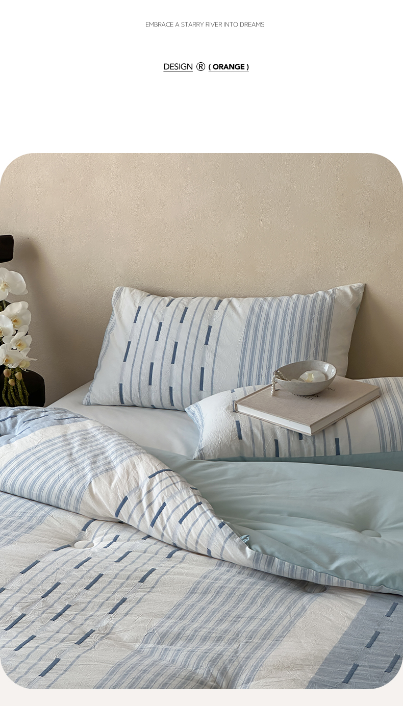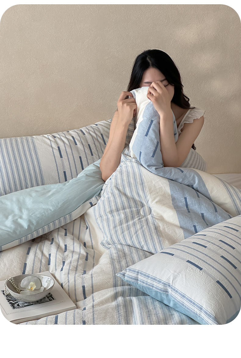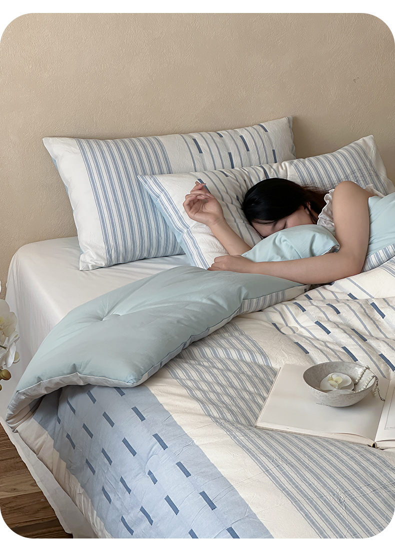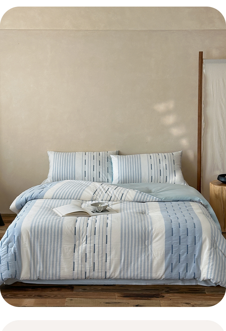 (总)一加一 2025新款全棉色织简约风艾阳绒抗菌被芯,浅兰韵律,桃之夭天,悠然时光