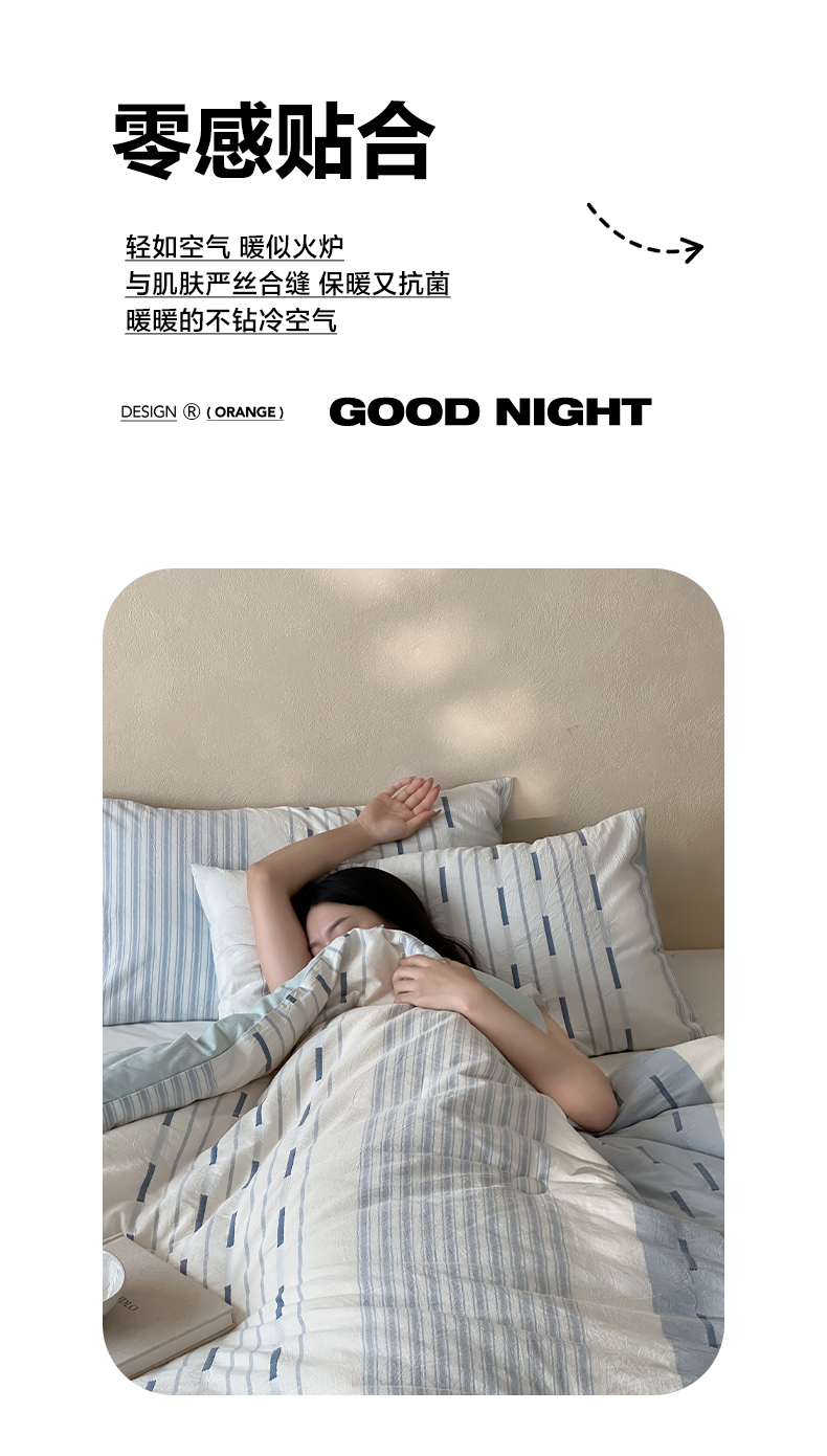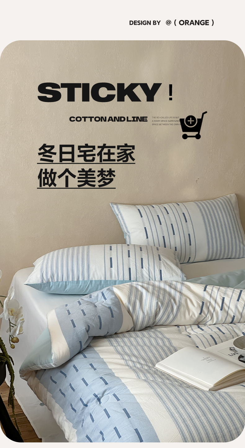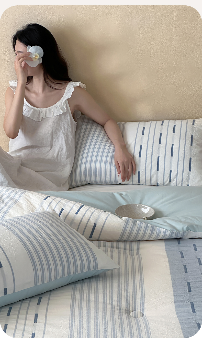(总)一加一 2025新款全棉色织简约风艾阳绒抗菌被芯,浅兰韵律,桃之夭天,悠然时光