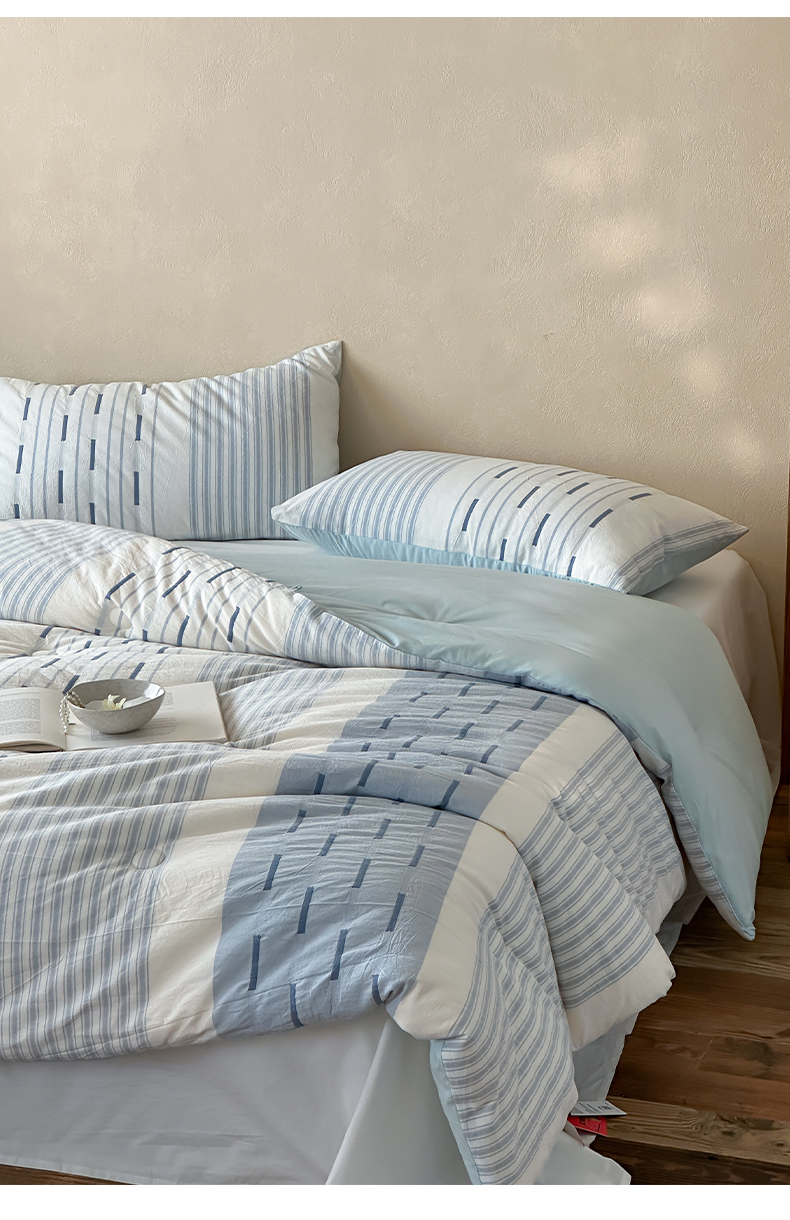 商品名称:一加一 2025新款全棉色织简约风艾阳绒抗菌被芯 浅兰韵律
