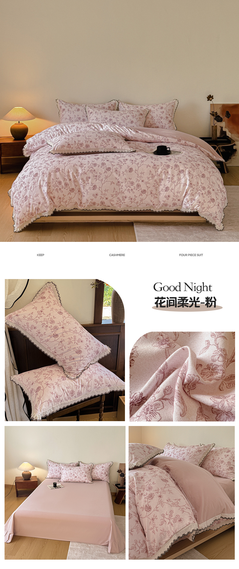 当前位置: 91家纺网 > 商品网购 > 床品套件 > 四件套 > 磨毛活性四件套 > 舒慕家纺 2025新款全棉磨毛花边赫本风磨毛四件套(送高端包装) 花间柔光-粉